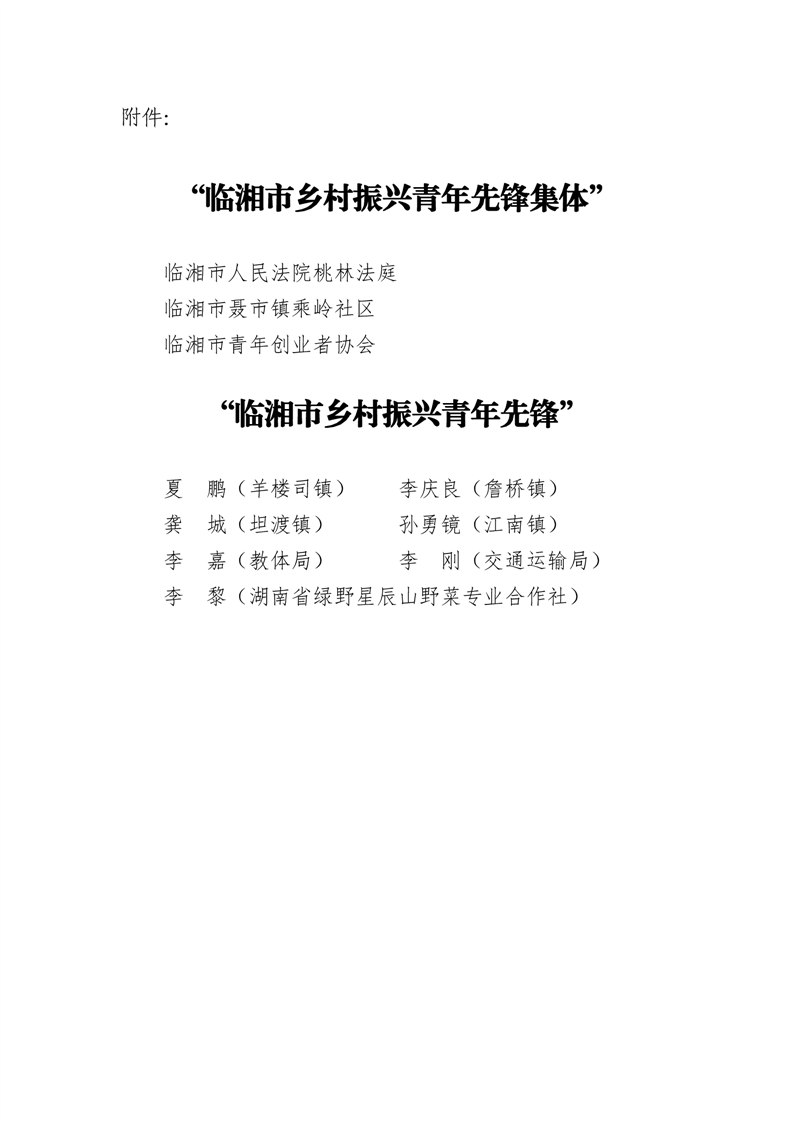 2023年"臨湘市鄉村振興青年先鋒"擬評選名單公示