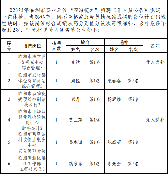 2023年臨湘市事業(yè)單位“四海攬才”招聘體檢人員遞補公告