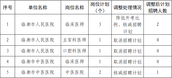 2024年臨湘市衛健系統“四海攬才”資格復審工作已結束,根據《2024年臨湘市衛健系統 “四海攬才”招聘工作人員公告》等規定,綜合復審情況,經市委人才工作領導小組研究同意,現將“四海攬才”相關招聘崗位開考比例、招聘計劃調整公告如下:
