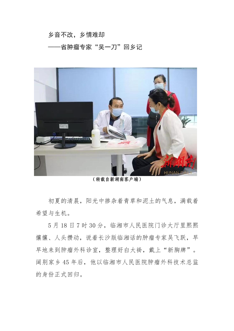 鄉音不改,鄉情難卻,省腫瘤專家“吳一刀”回臨湘二次創業
