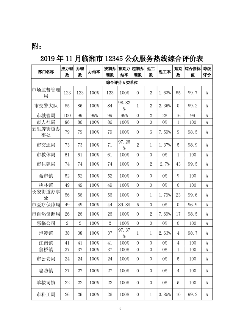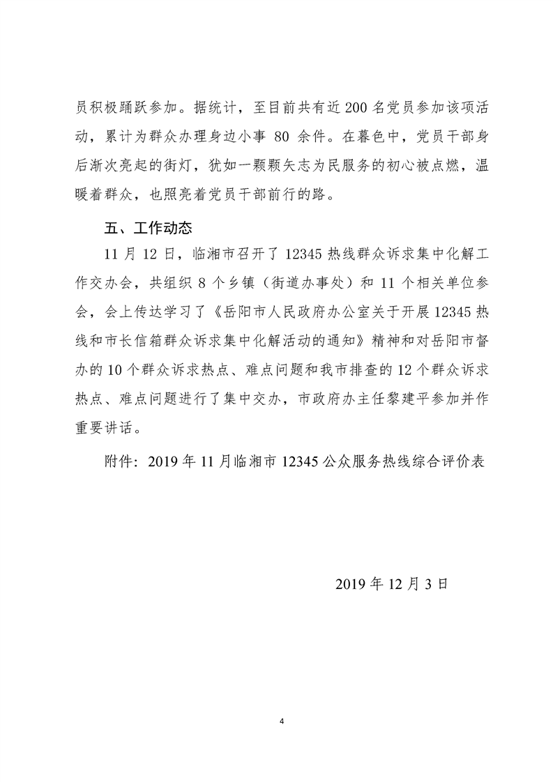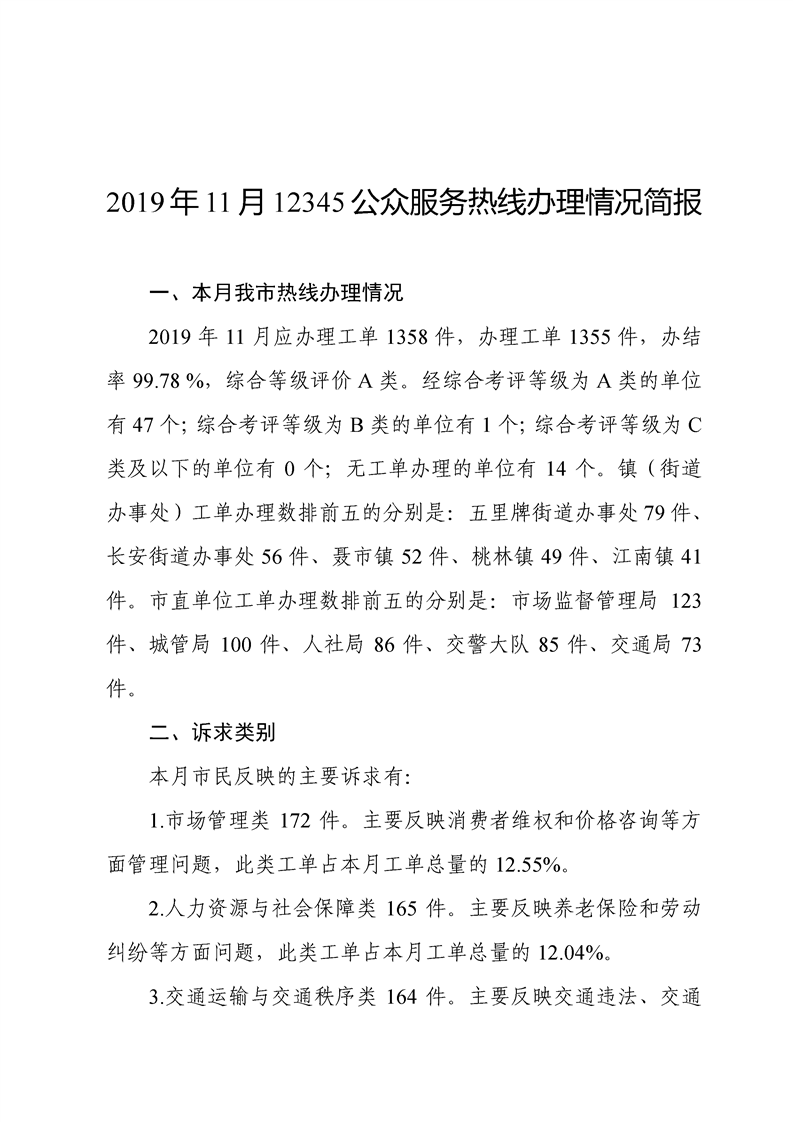 2019年 11月 12345公眾服務熱線辦理情況簡報