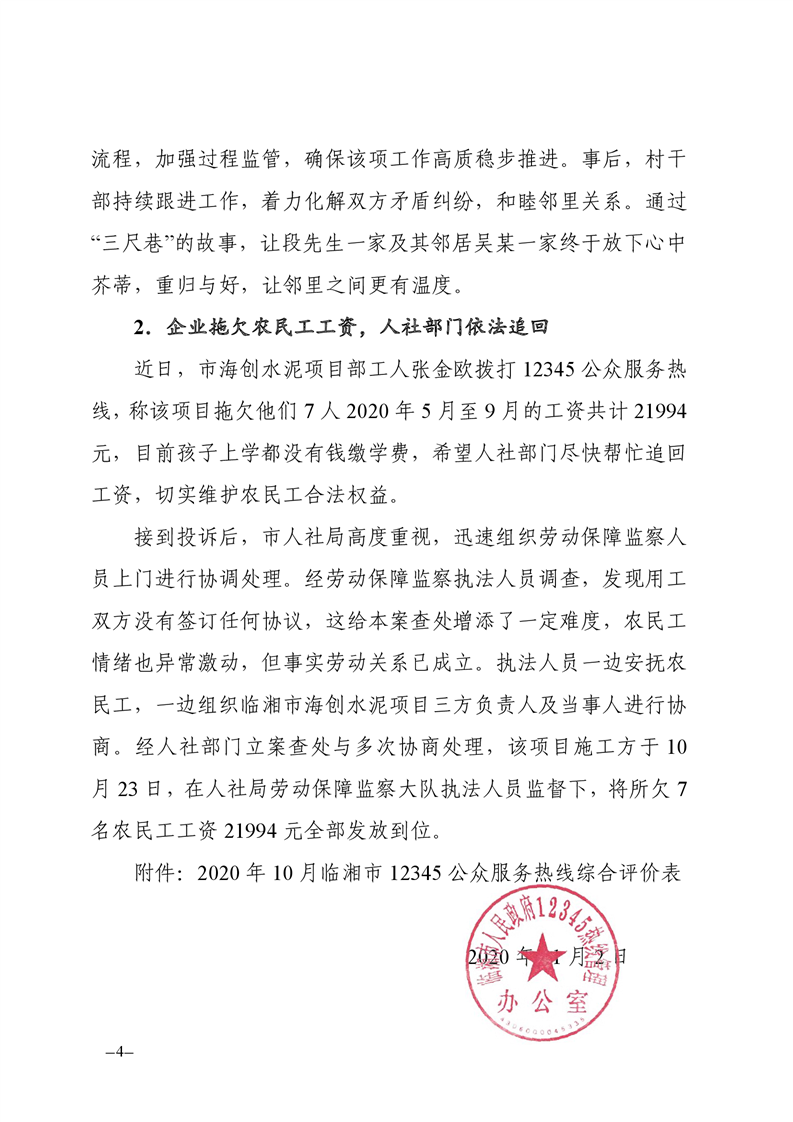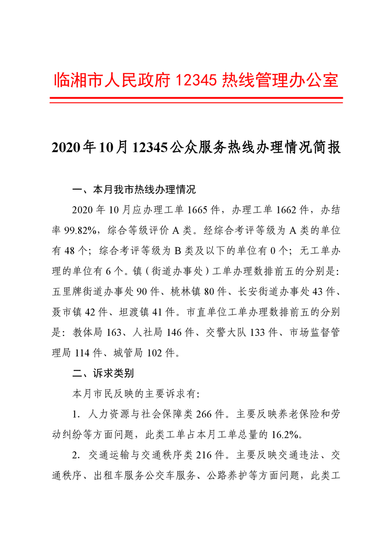 2020年10月12345公眾服務熱線辦理情況簡報