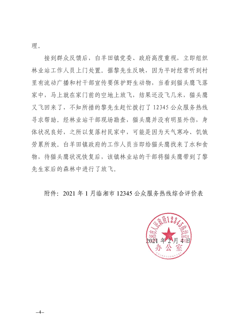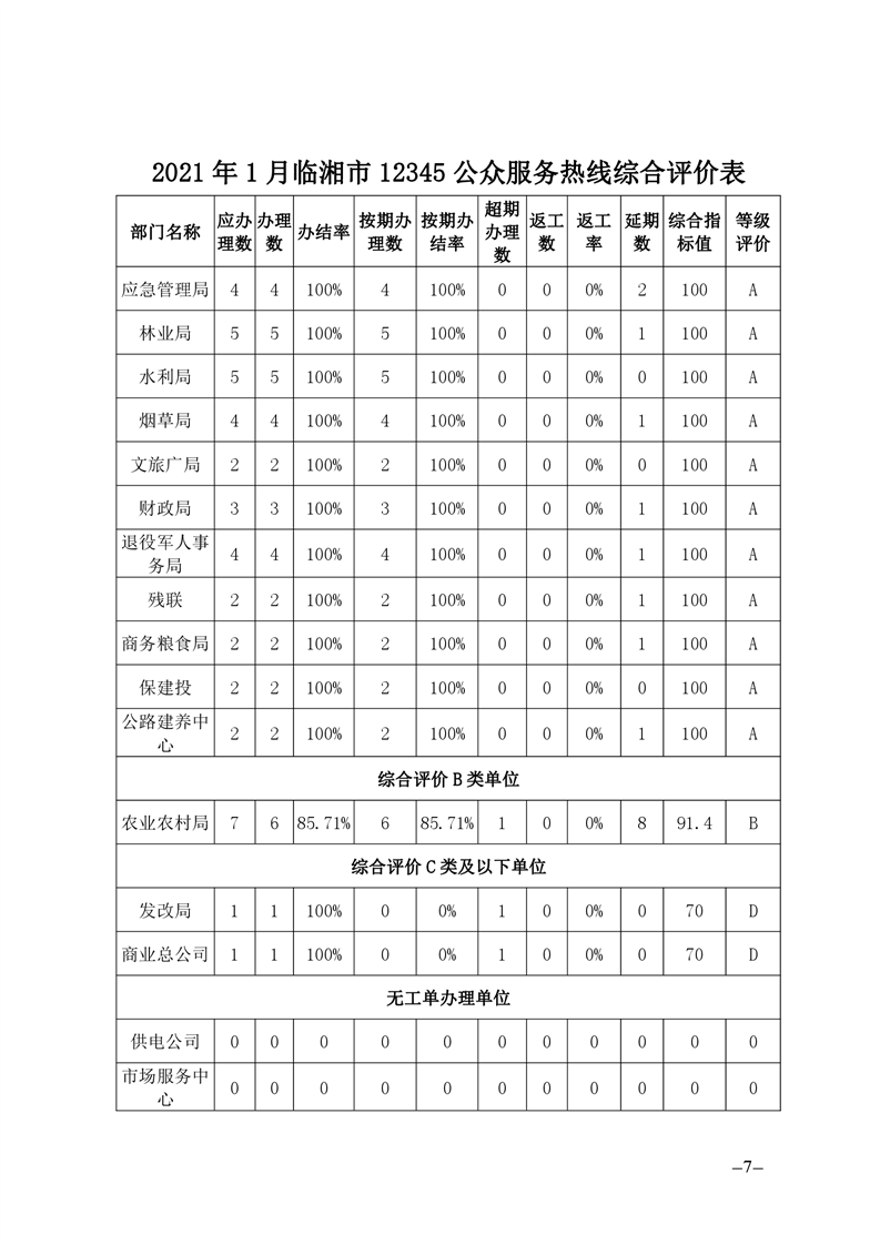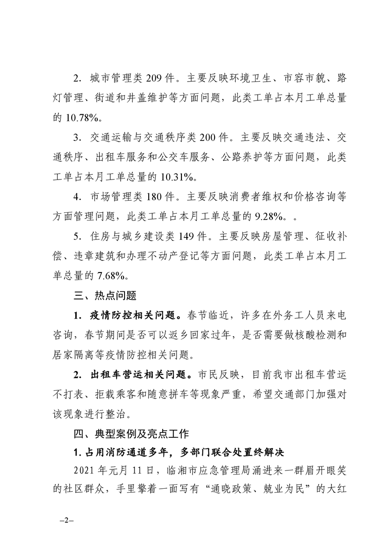 2021年1月12345公眾服務熱線辦理情況簡報