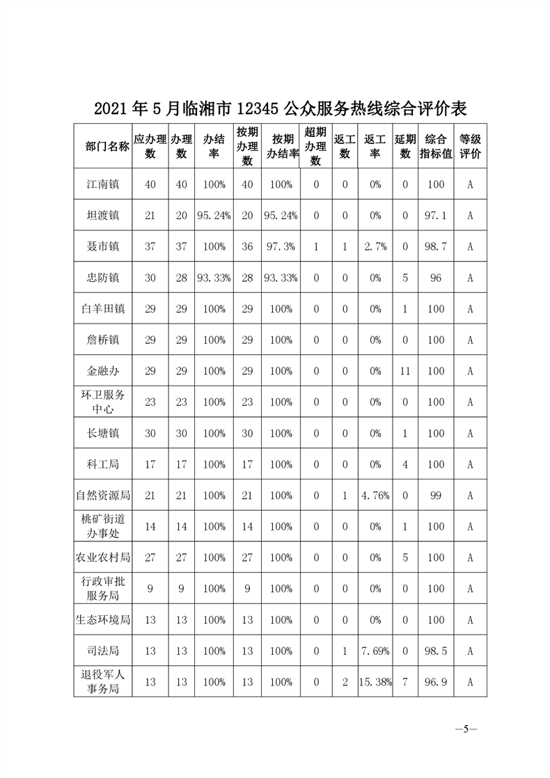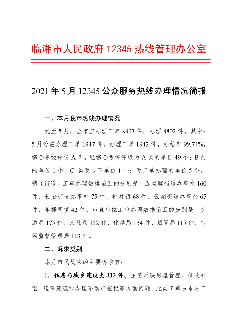 2021年5月12345公眾服務熱線辦理情況簡報