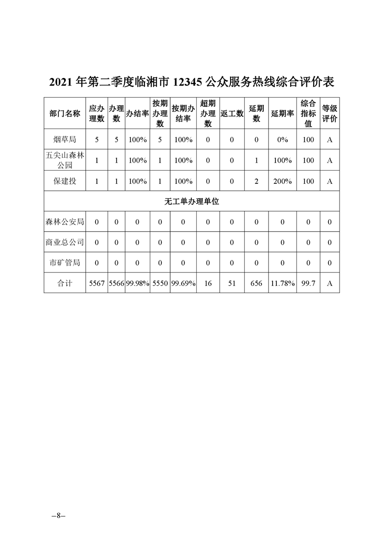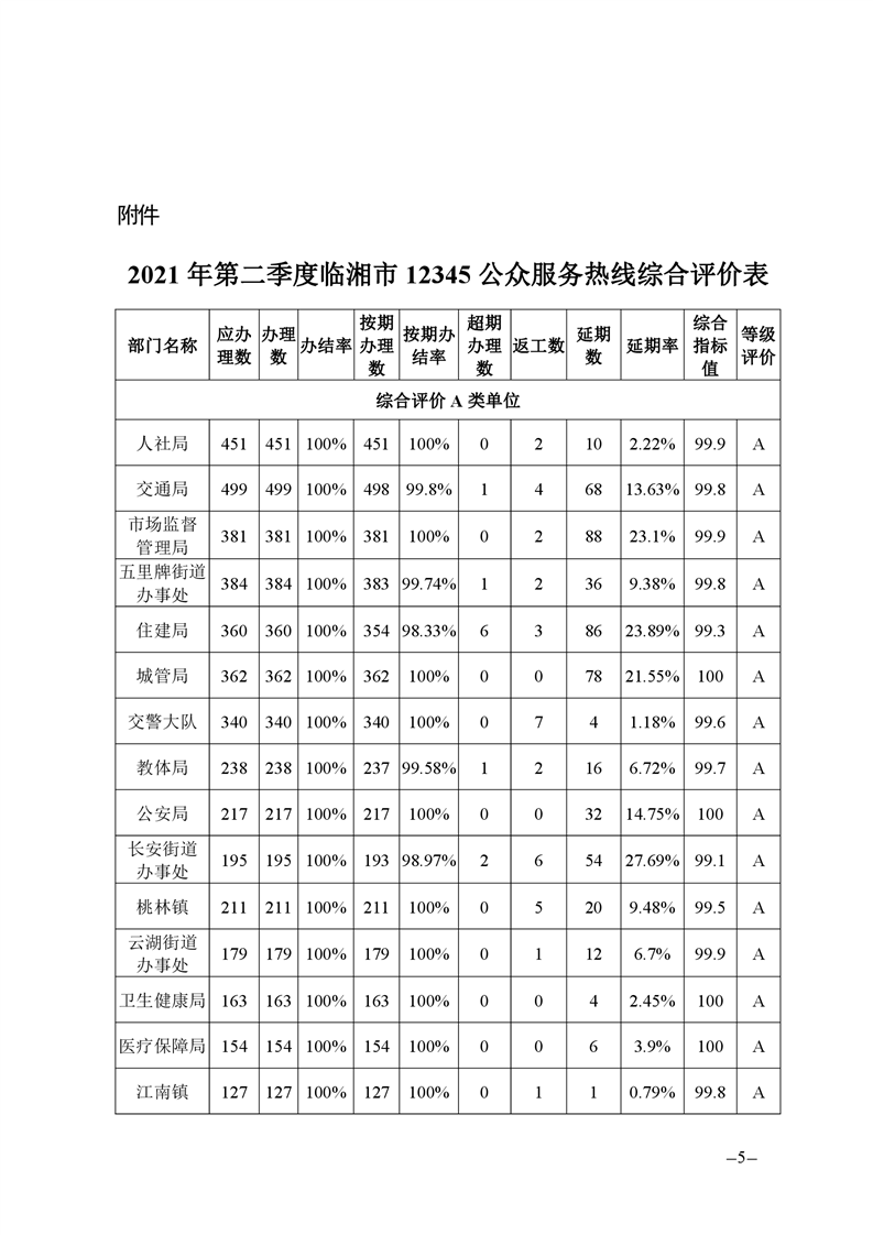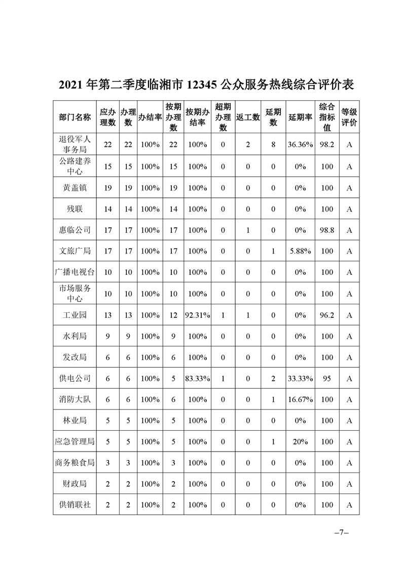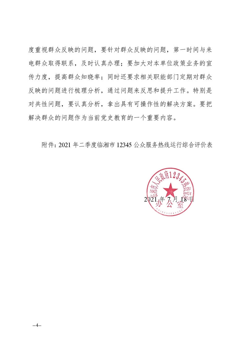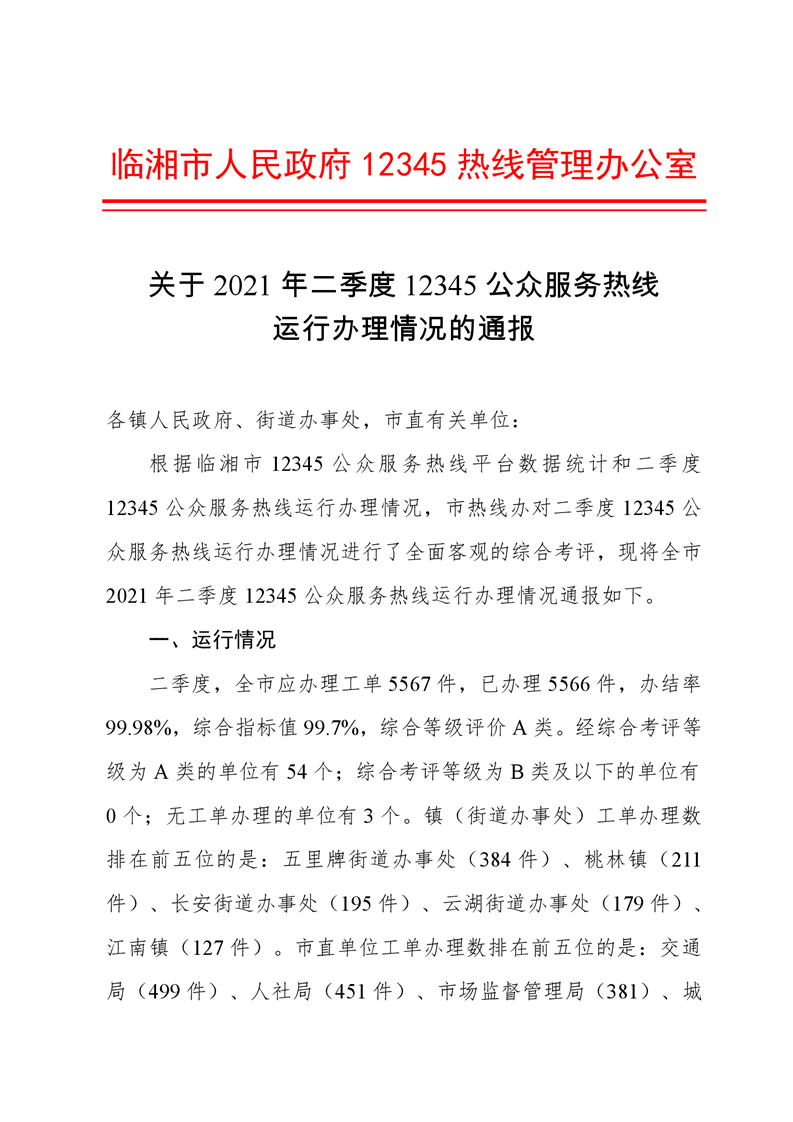 關于2021年二季度12345公眾服務熱線運行辦理情況的通報