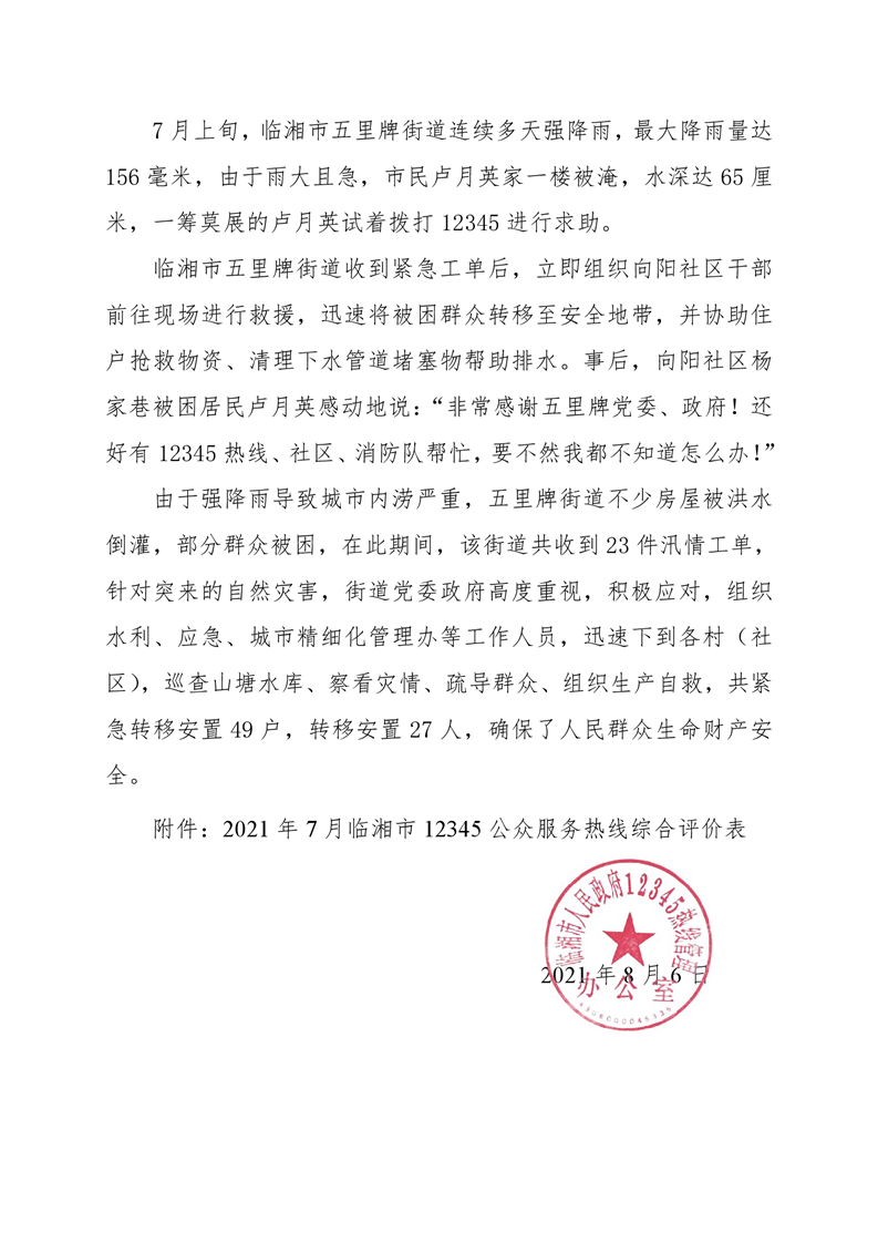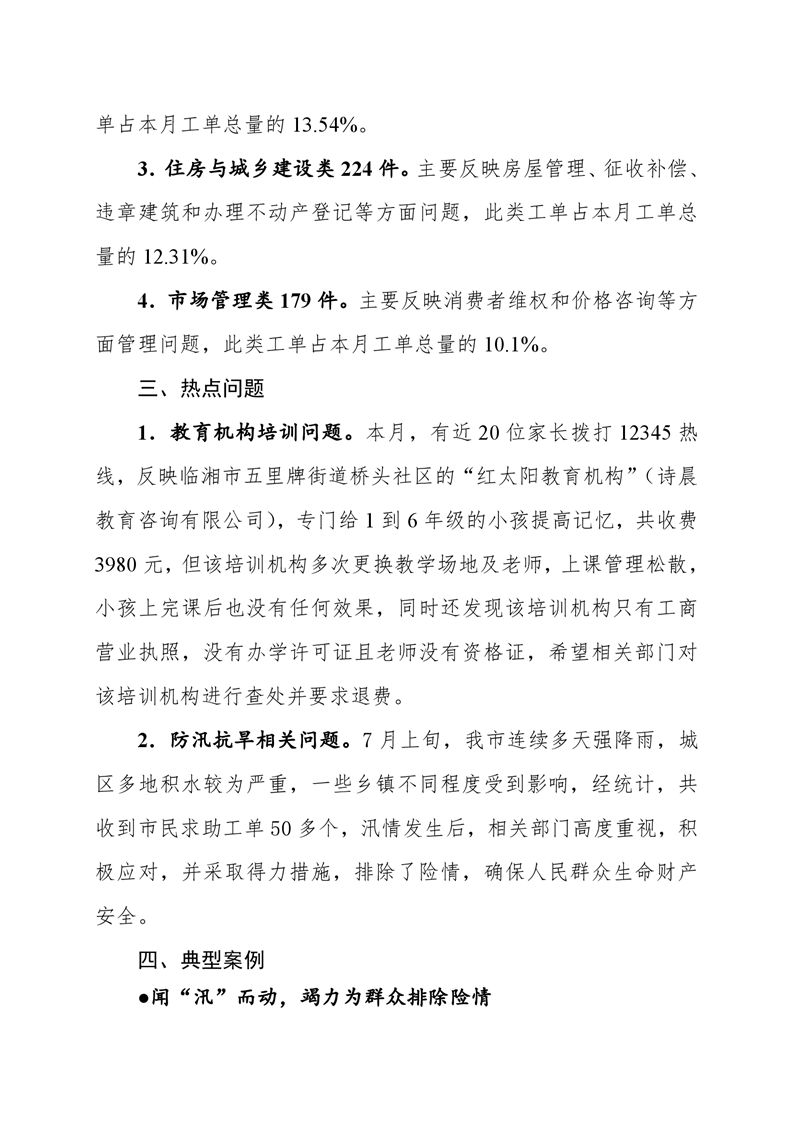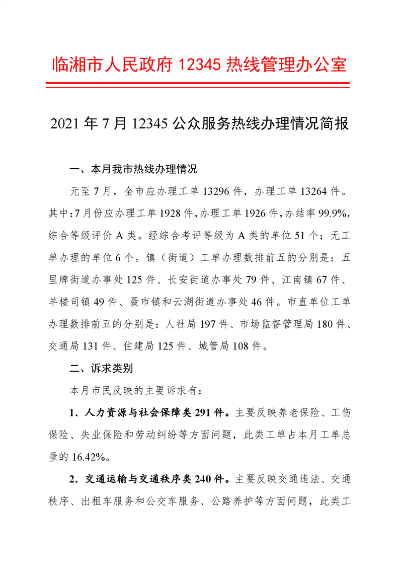 2021年7月12345公眾服務(wù)熱線辦理情況簡(jiǎn)報(bào)
