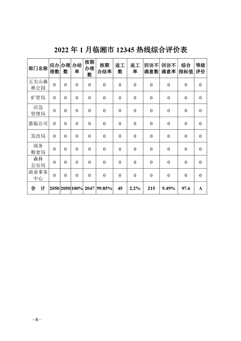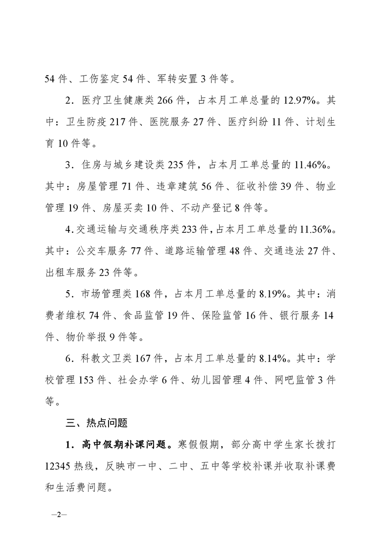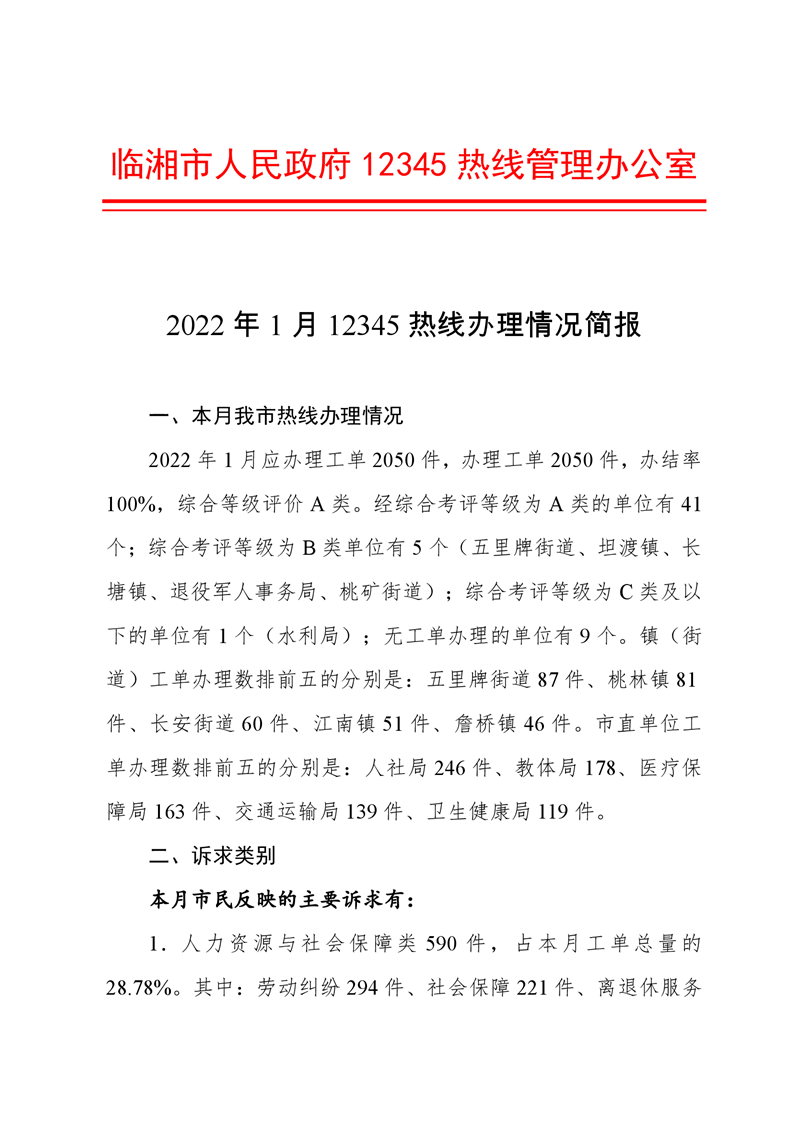 2022年1月12345熱線辦理情況簡(jiǎn)報(bào)