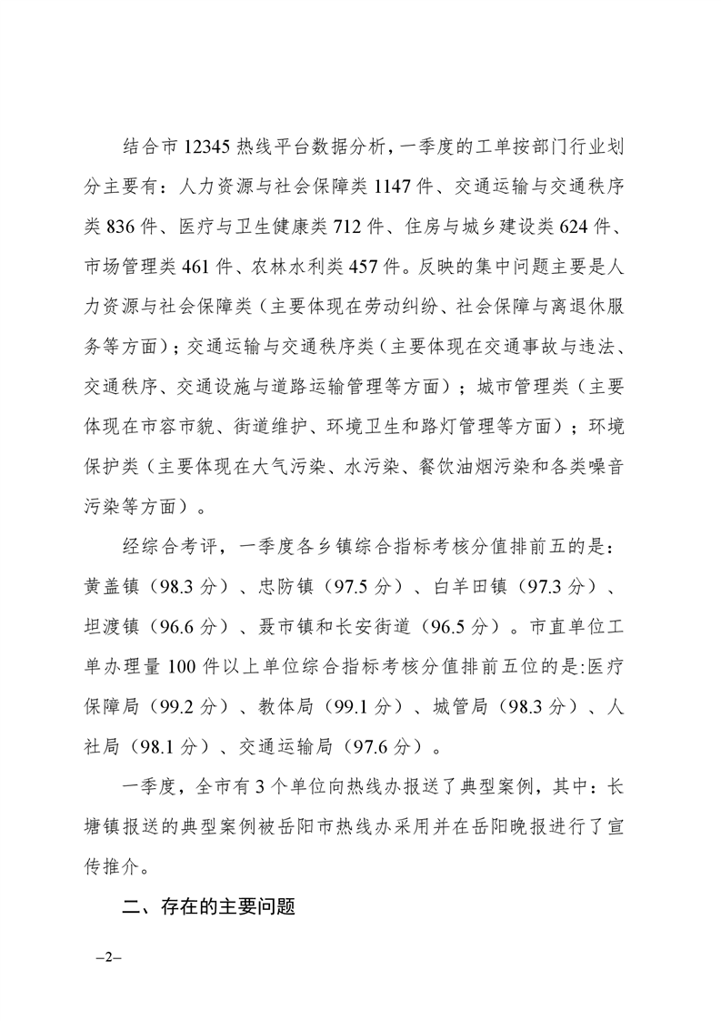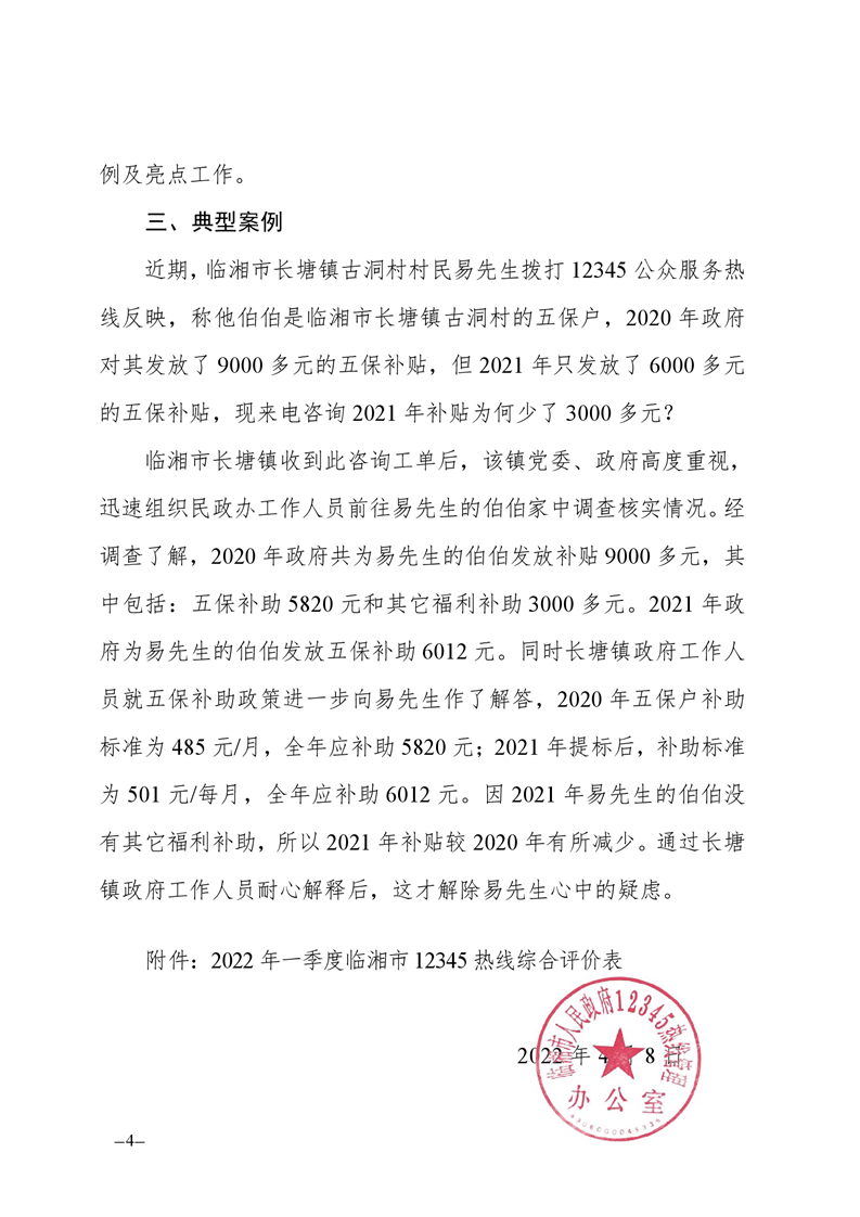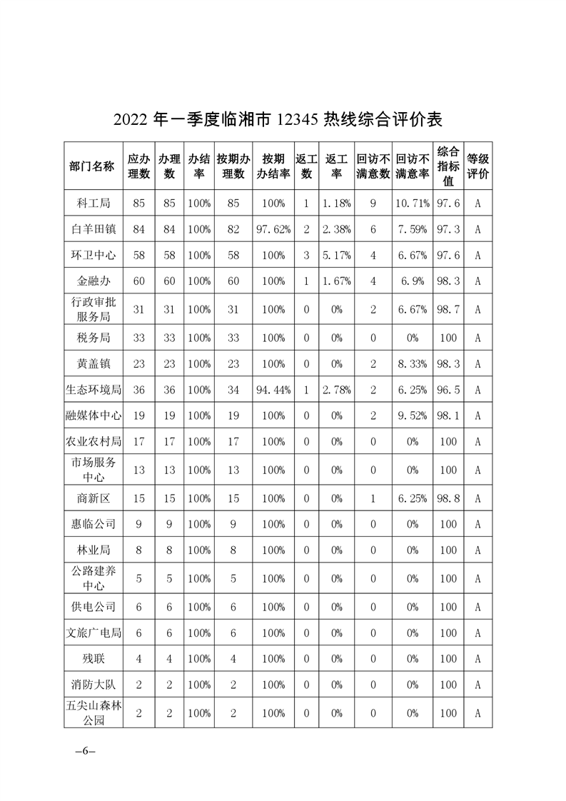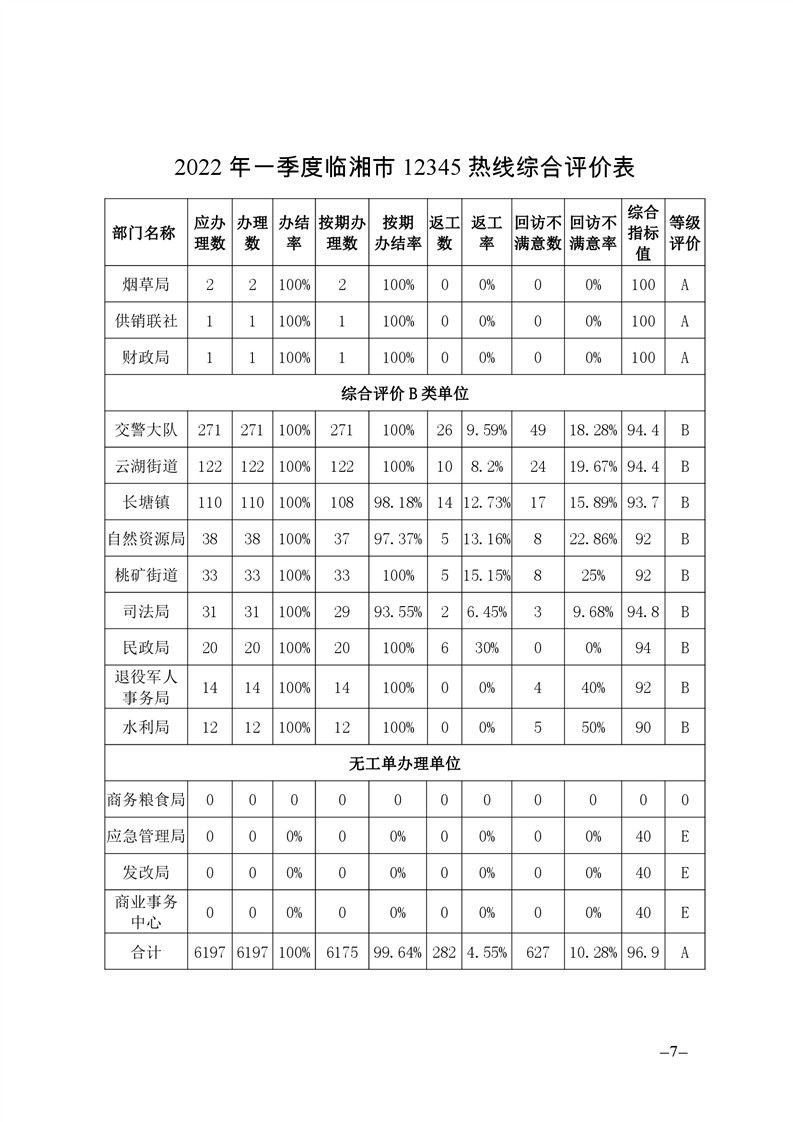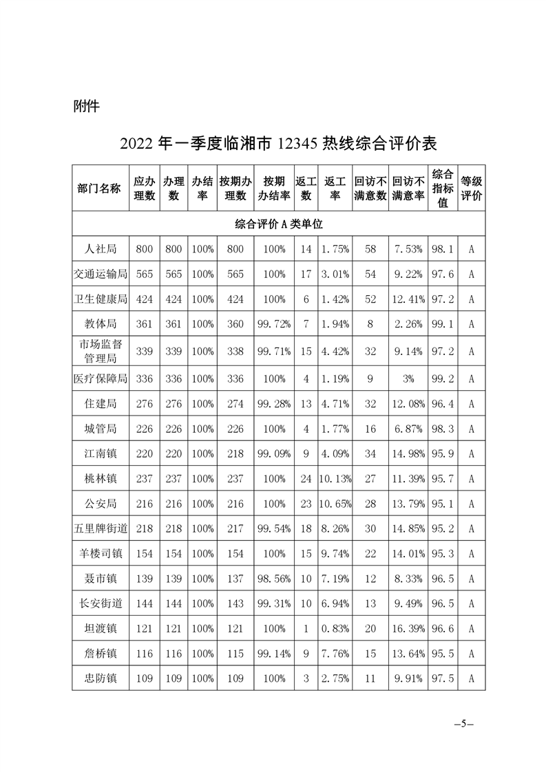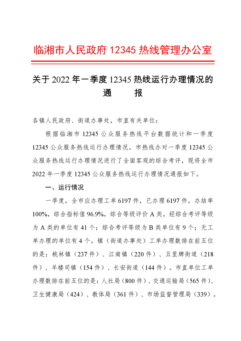 關于2022年一季度12345公眾服務熱線運行辦理情況的通報