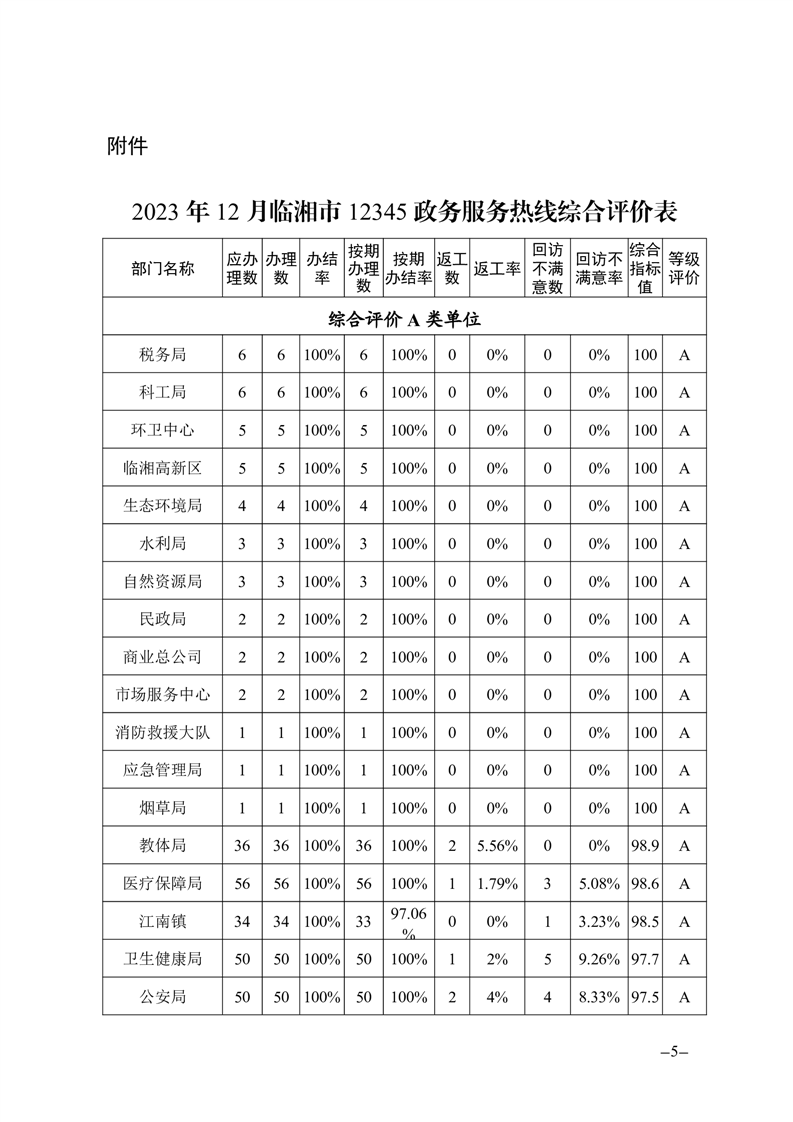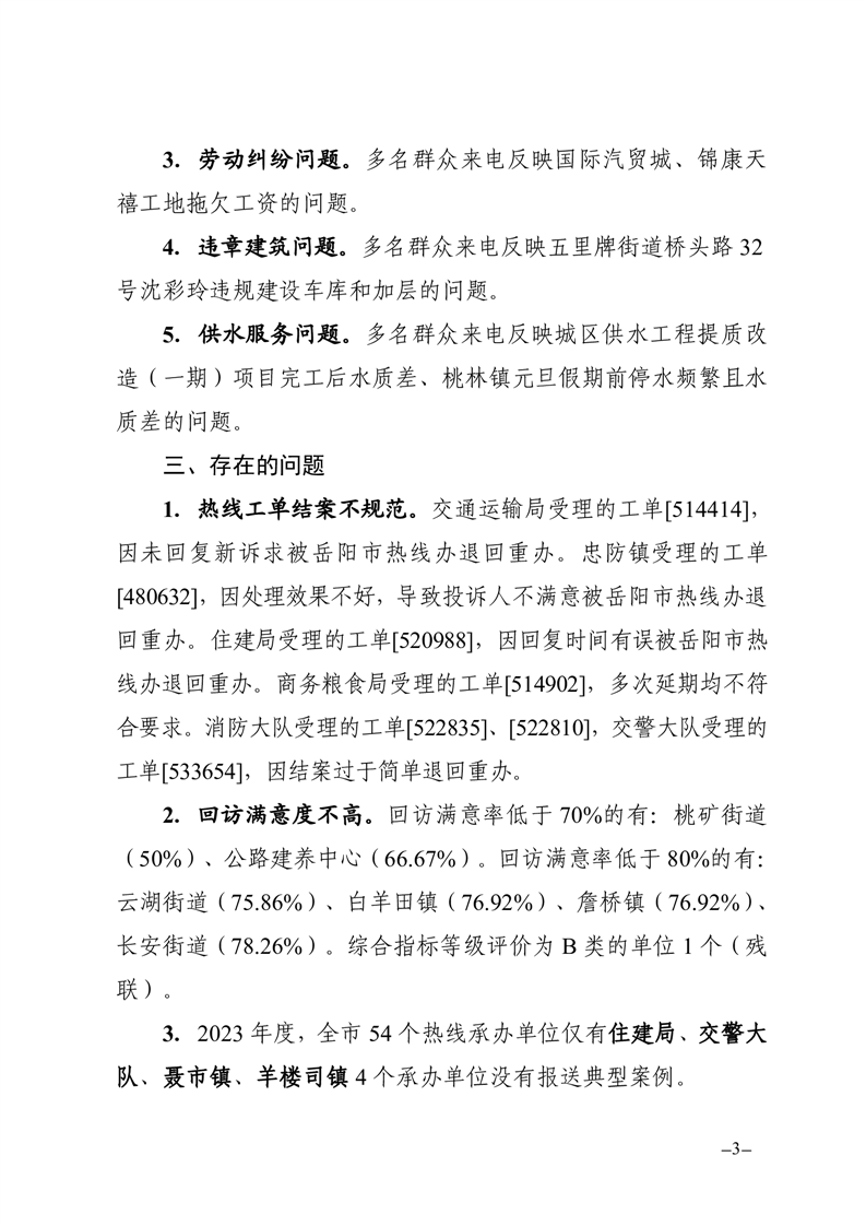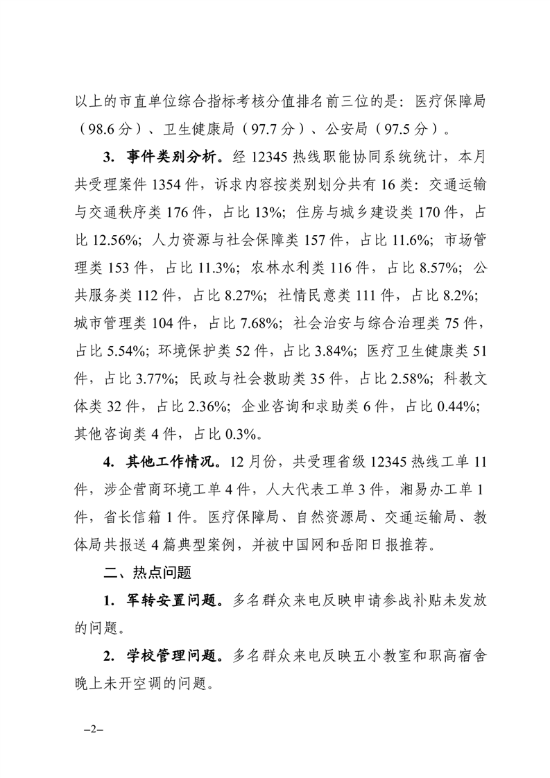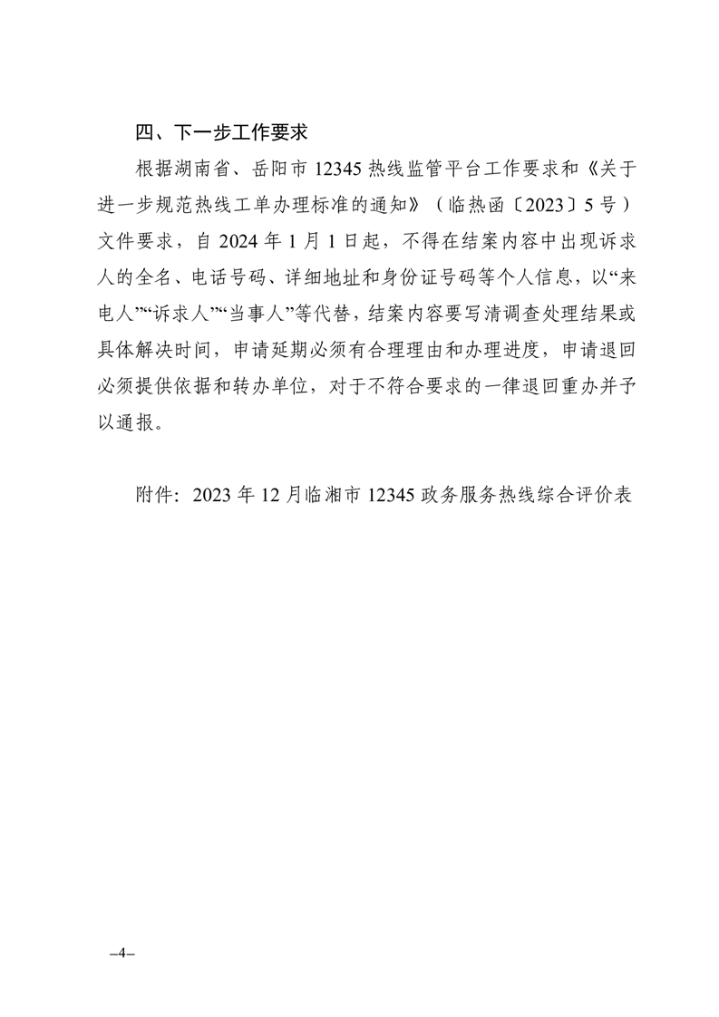 2023年12月12345熱線辦理情況通報(bào)