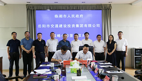 9月16日上午,我市與岳陽市交通建設投資集團有限公司簽訂戰略合作協議。岳陽市交通建設投資集團有限公司黨委副書記、總經理諶曦,岳陽市交通建設投資集團有限公司黨委副書記、交投智城公司董事長凌峰云與我市領導劉琦、易興建、曹超、吳天星等出席簽約儀式。