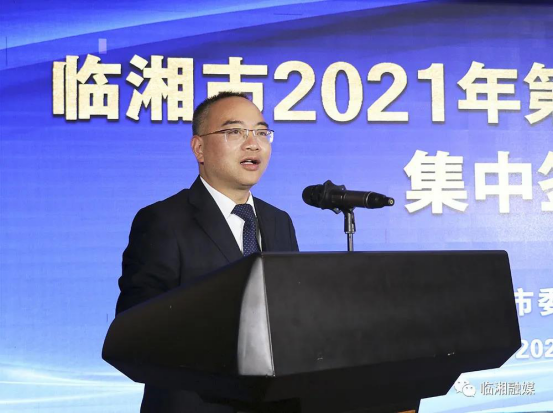 市委書記王文華在簽約儀式上致辭。他表示,我市將不斷優化營商環境,提供優質高效服務,堅持問題導向、目標導向、結果導向,全力保障各個項目早開工、早建設、早運營、早見效,真正讓企業放心投資、安心經營、舒心發展。王文華希望各位企業家,能一如既往地關注臨湘、宣傳臨湘、投資臨湘、給力臨湘,同心協力、相向而行,共同打造合作圓滿、互惠共贏的“樣板”,源源不斷地為岳陽市“三區一中心”建設貢獻臨湘力量。