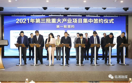 11月22日上午,我市2021年第三批重大產業項目集中簽約16個,總投資達113.5億元,預計年創稅收6.16億元。岳陽市委副書記、市長李愛武,岳陽市政協副主席、市發改委主任劉曉英,岳陽市政府黨組成員魏淑萍,我市領導王文華、劉琦、易興建、李其報、彭海云等出席簽約儀式。