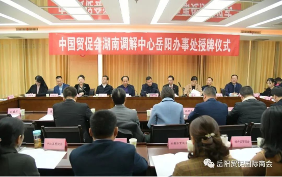 11月26日上午,中國國際貿(mào)易促進委員會湖南調(diào)解中心岳陽辦事處、中國貿(mào)促會湖南調(diào)解中心岳陽辦事處岳陽自貿(mào)片區(qū)聯(lián)絡(luò)站授牌儀式舉行,省貿(mào)促會副會長余炳銳,市政府副秘書長李謙,市貿(mào)促會、市中級人民法院、湖南自貿(mào)區(qū)岳陽片區(qū)及相關(guān)部門負責人和外聘調(diào)解員出席。