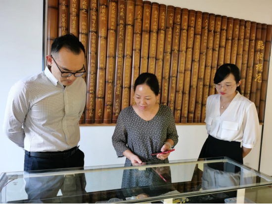 藺佳一行首先參觀了貿促會臨湘名優特產品展示廳,詳細了解臨湘釣具浮標、農產品加工、竹木家居等特色產業,并與市貿促會全體干部職工座談交流。