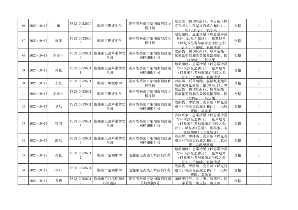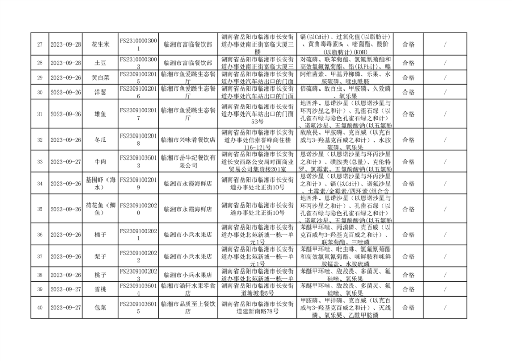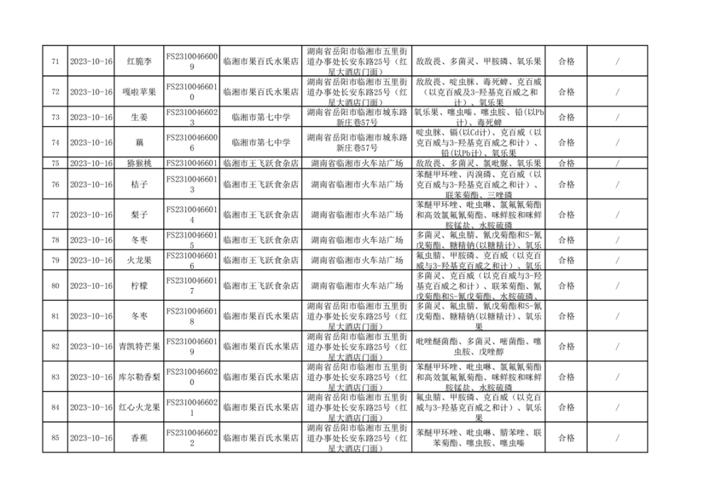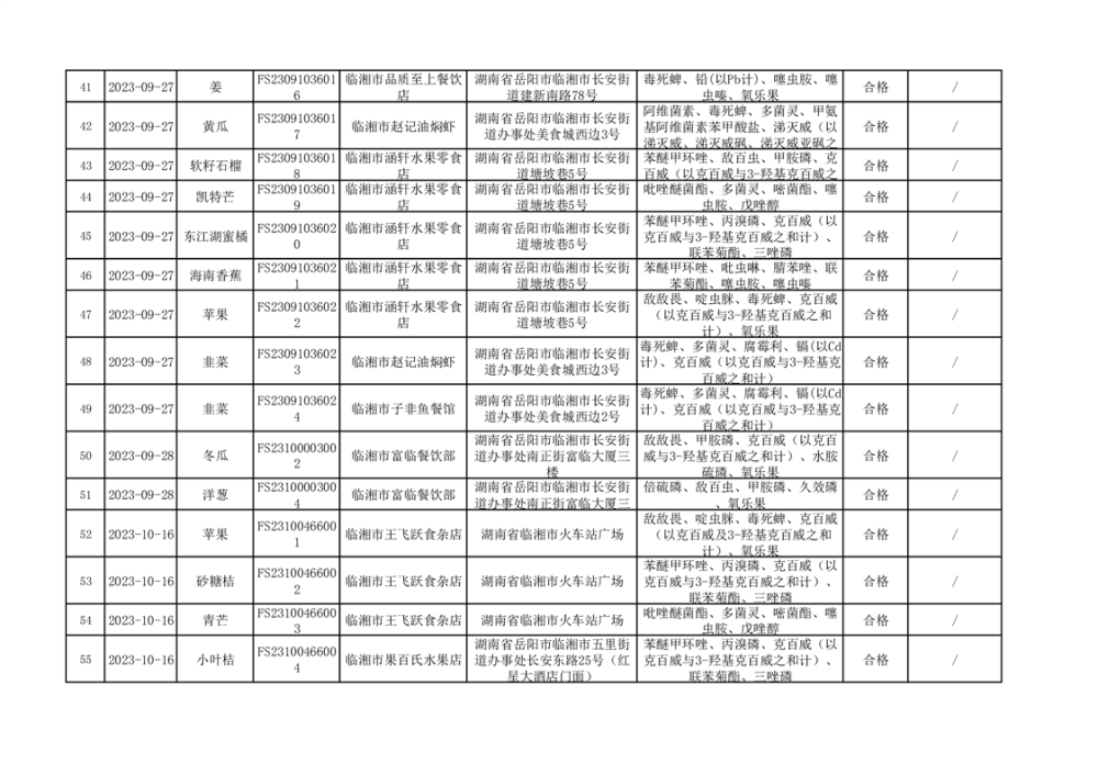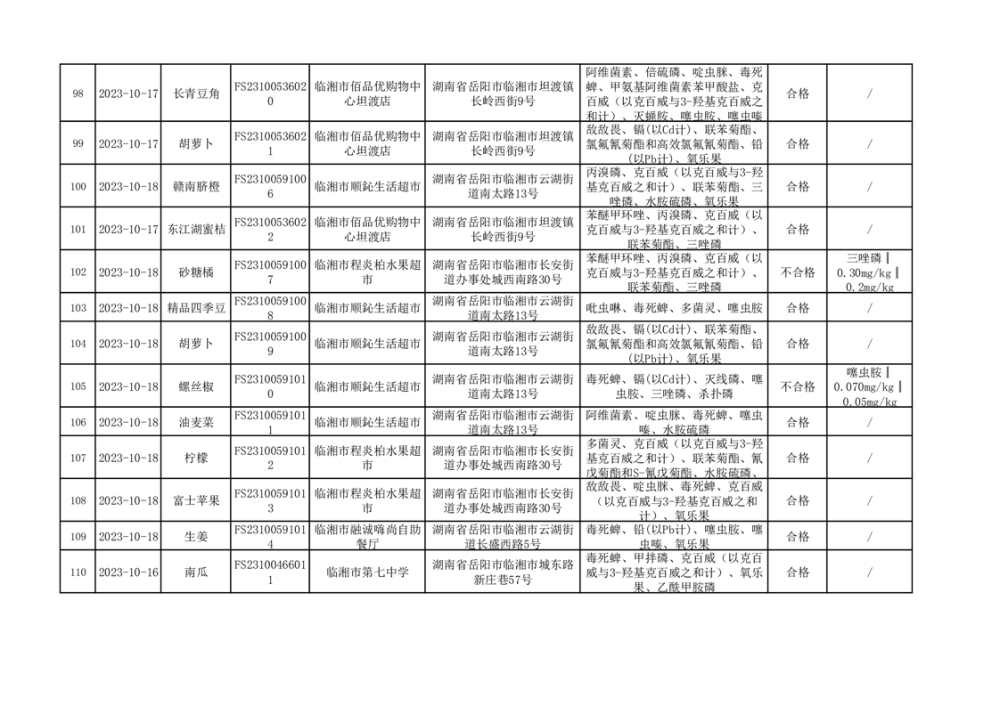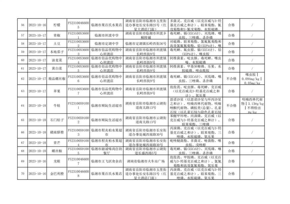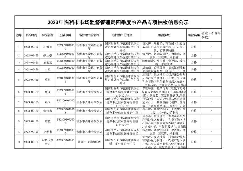 2023年臨湘市市場監督管理局四季度農產品專項抽檢信息公示