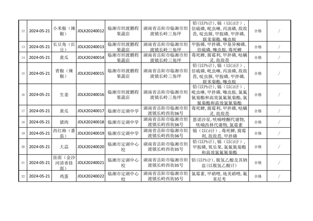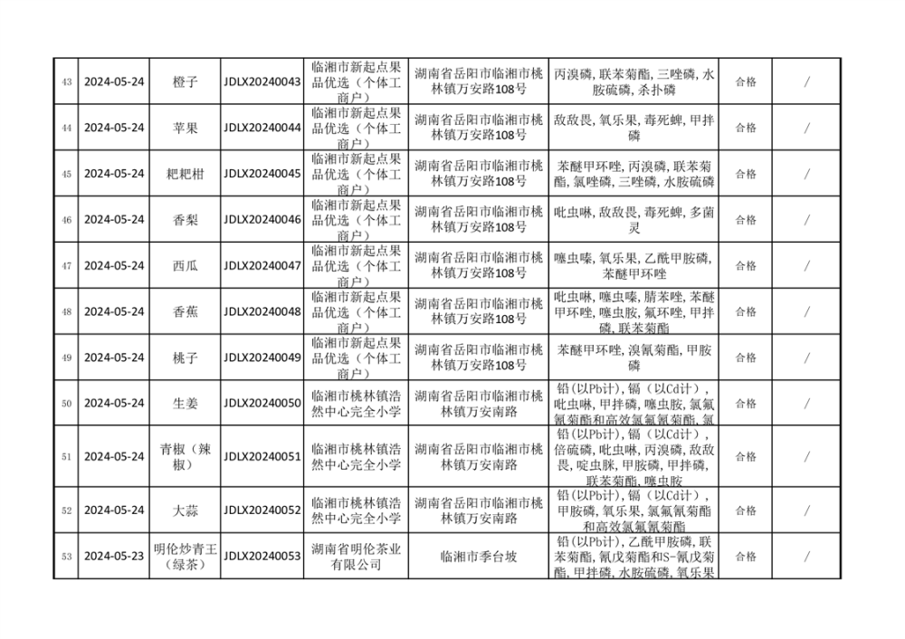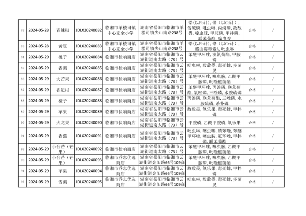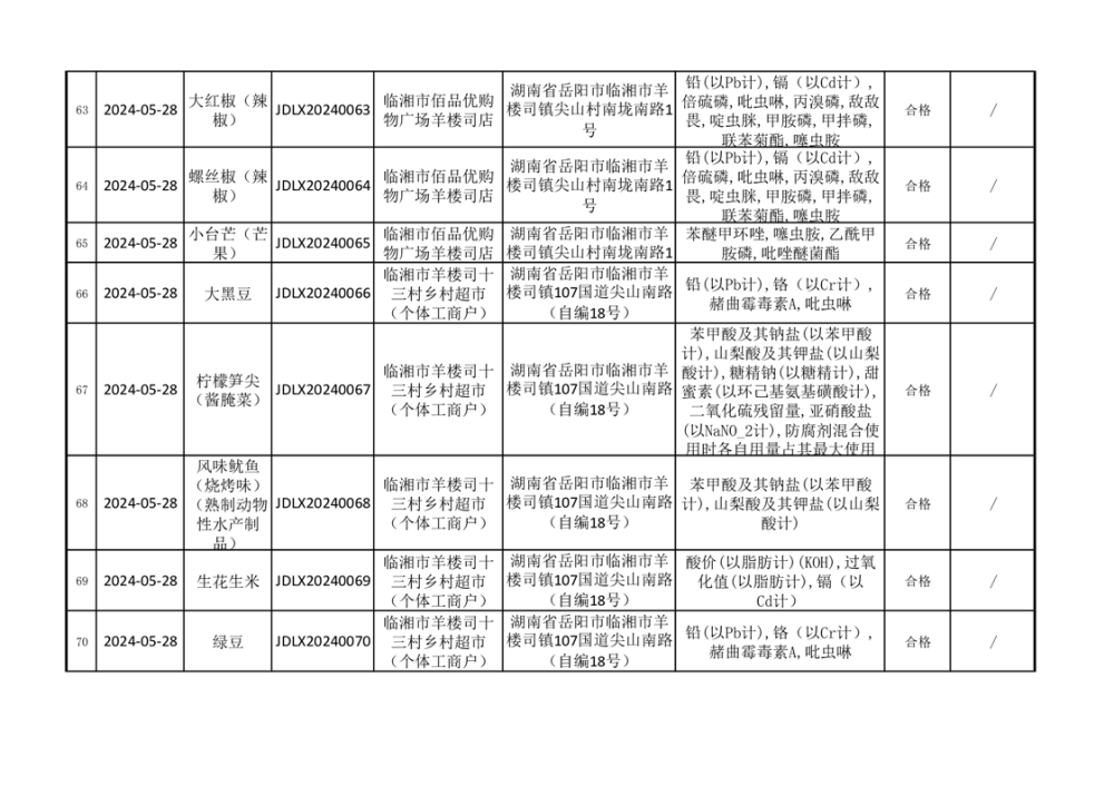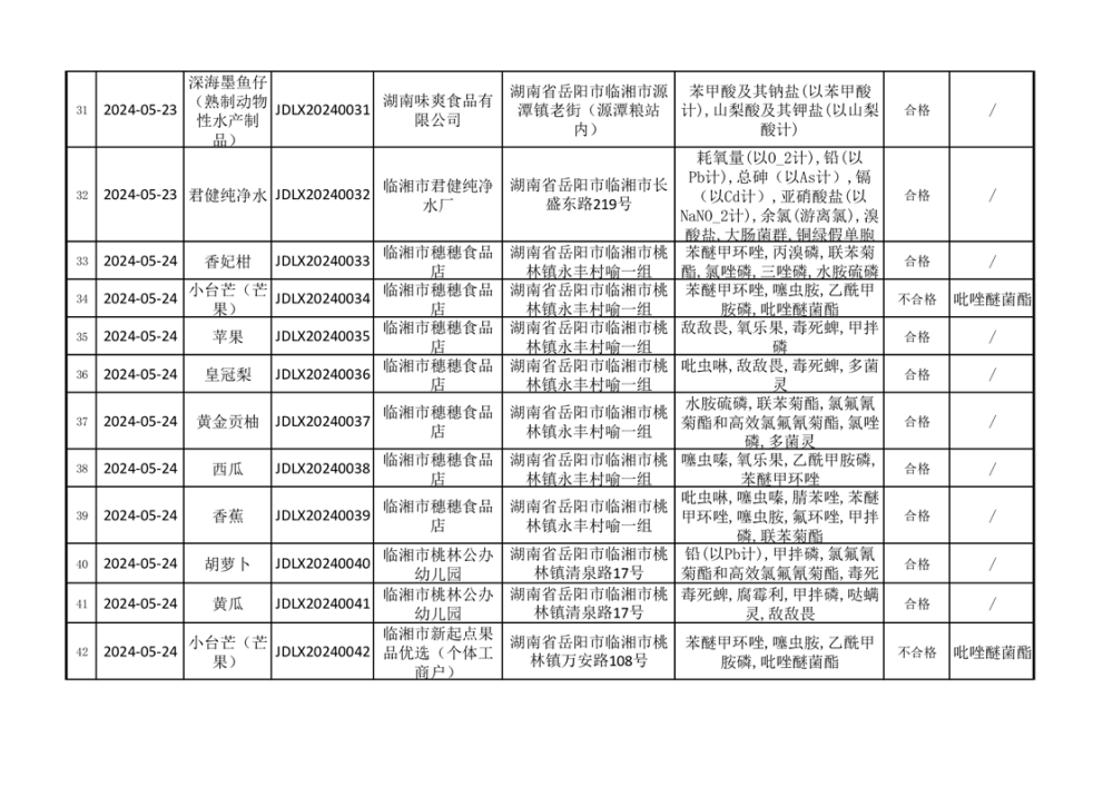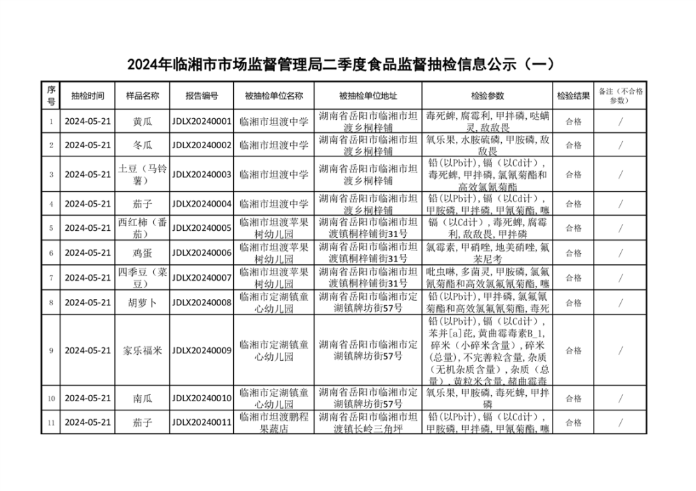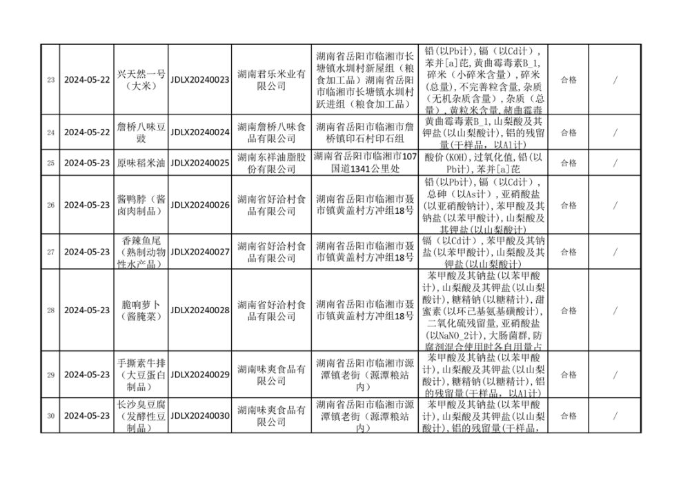 2024年臨湘市市場監督管理局二季度食品監督抽檢信息公示(一)