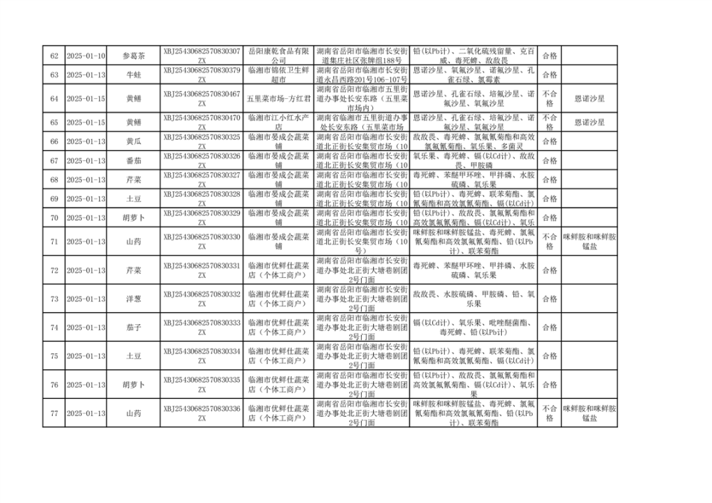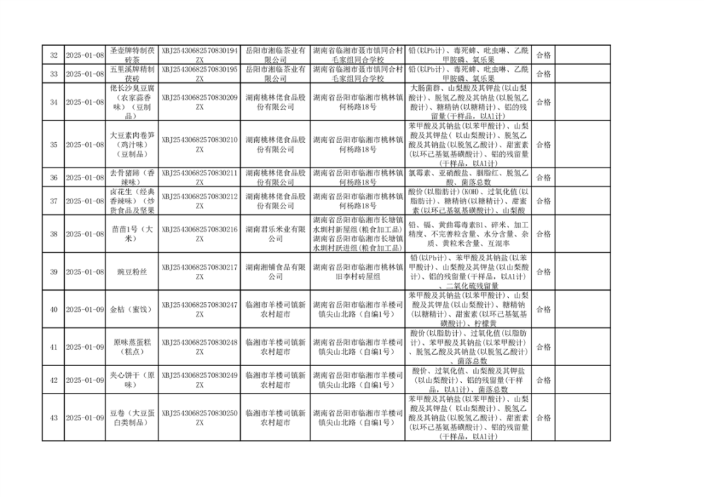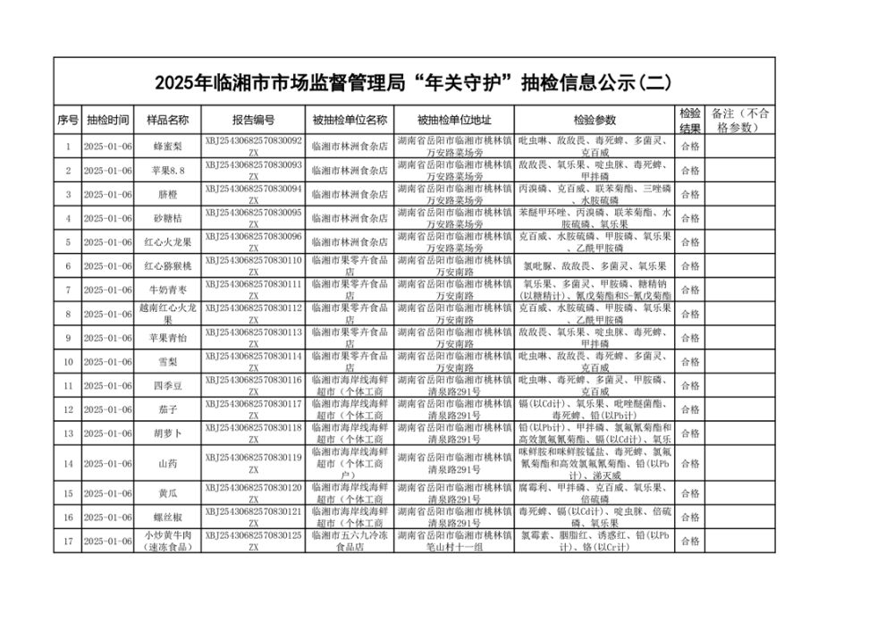 2025年臨湘市市場(chǎng)監(jiān)督管理局“年關(guān)守護(hù)”抽檢信息公示(二)