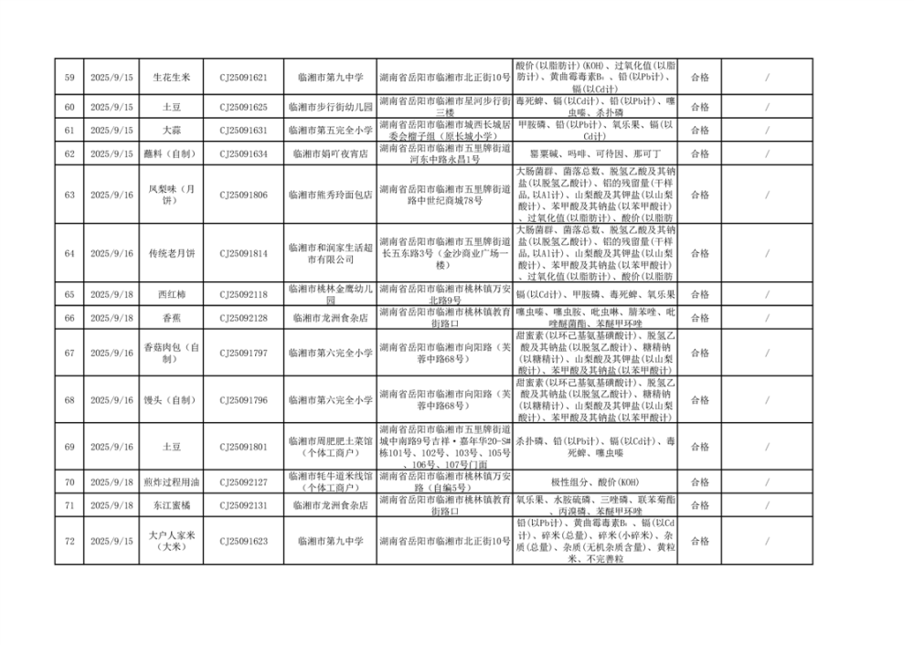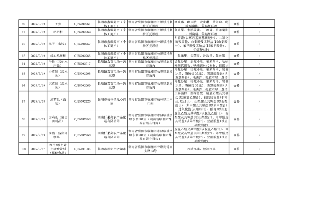 2025年臨湘市市場監督管理局三季度食品專項抽檢信息公示(二)