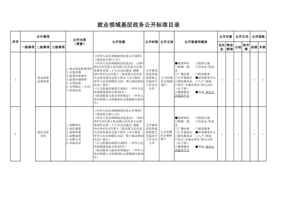臨湘市穩崗就業領域基層政務公開標準目錄