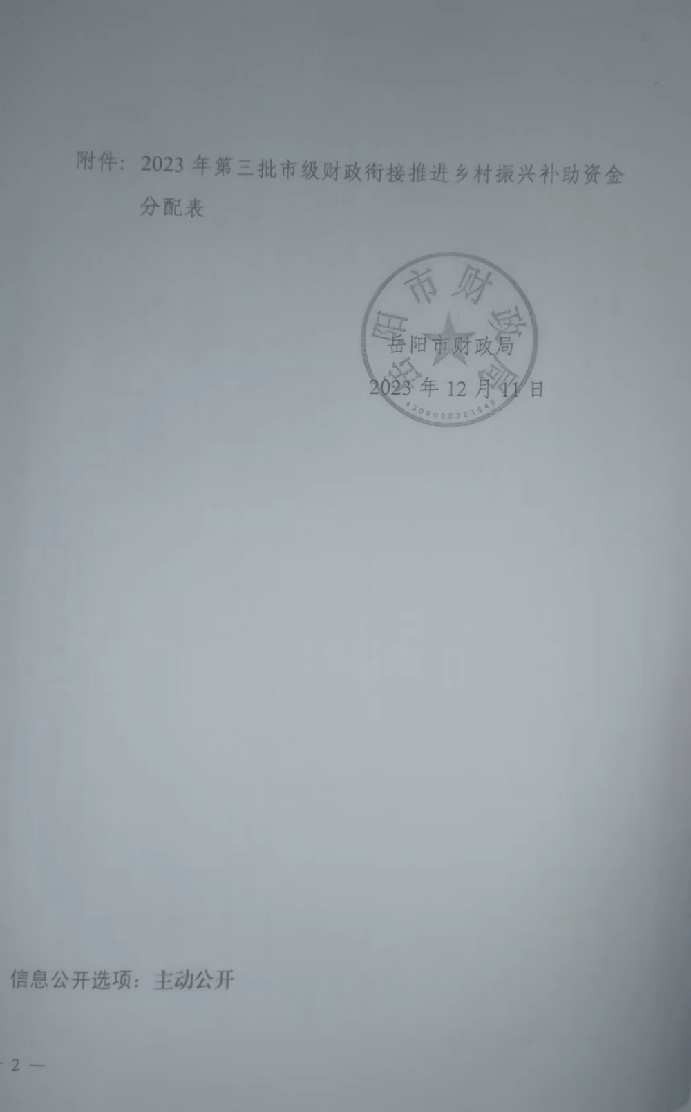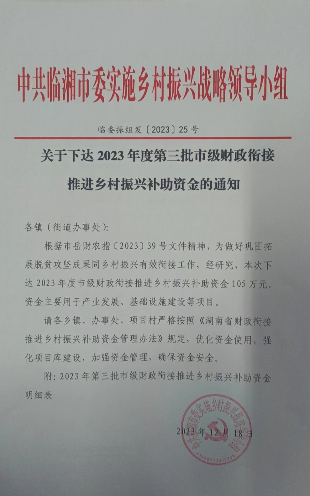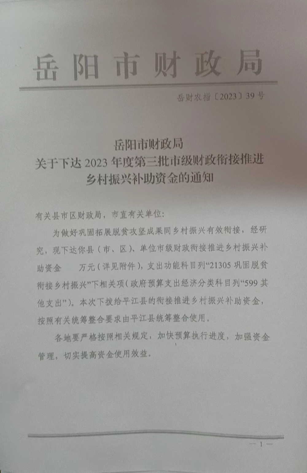關于下達2023年度第三批市級財政銜接推進鄉村振興補助資金的通知