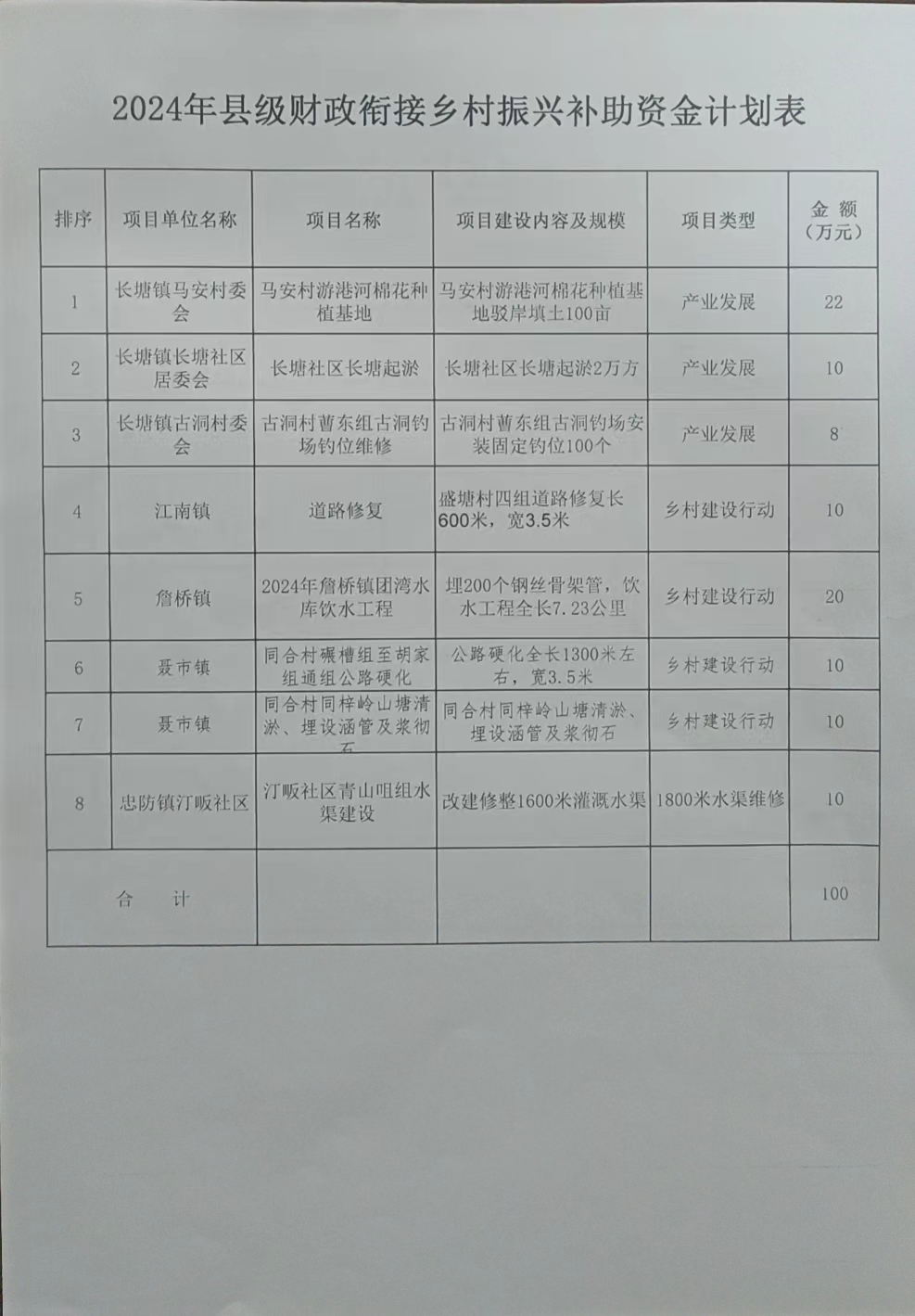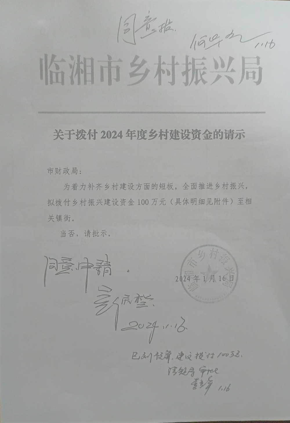 關于撥付2024年度鄉村建設資金的請示(縣級配套2)