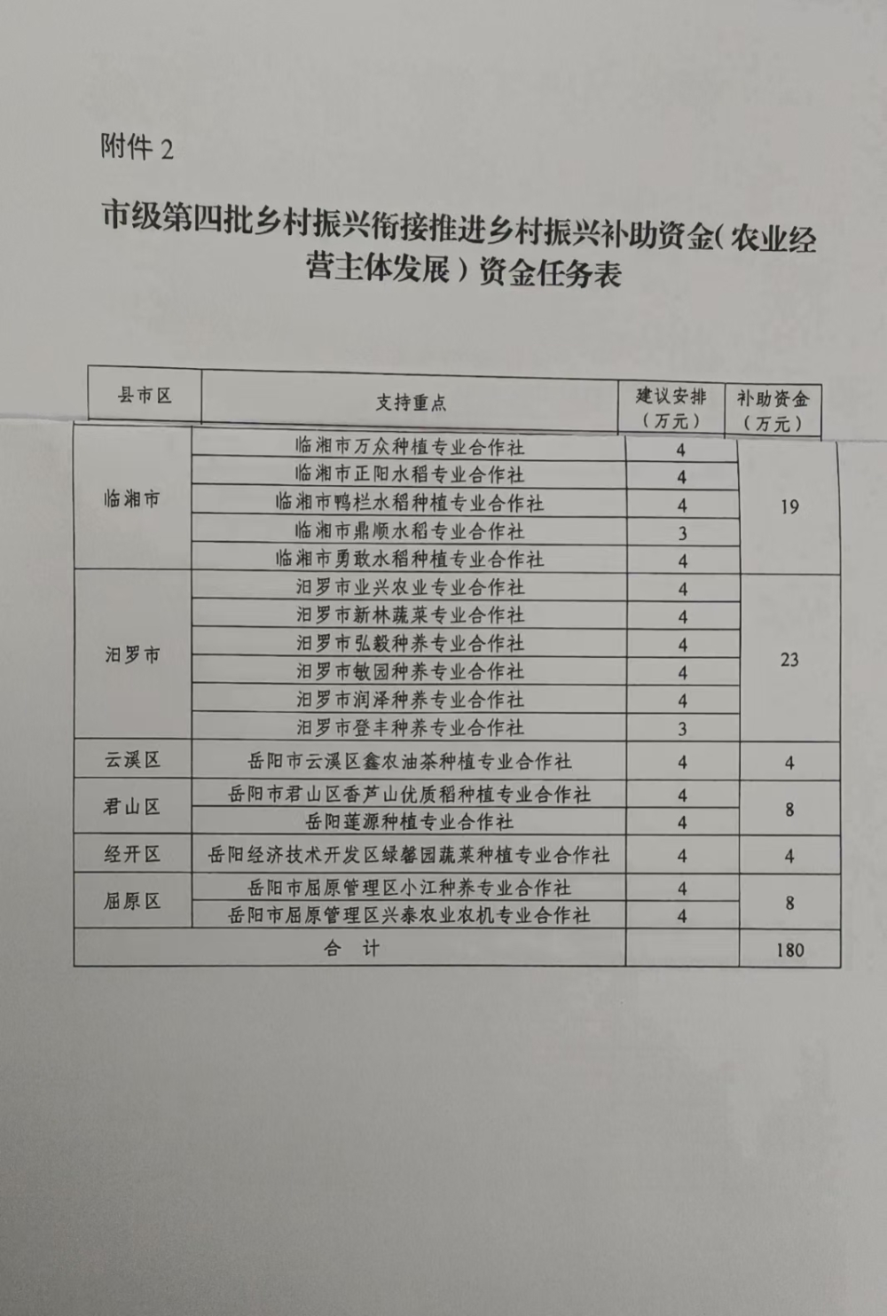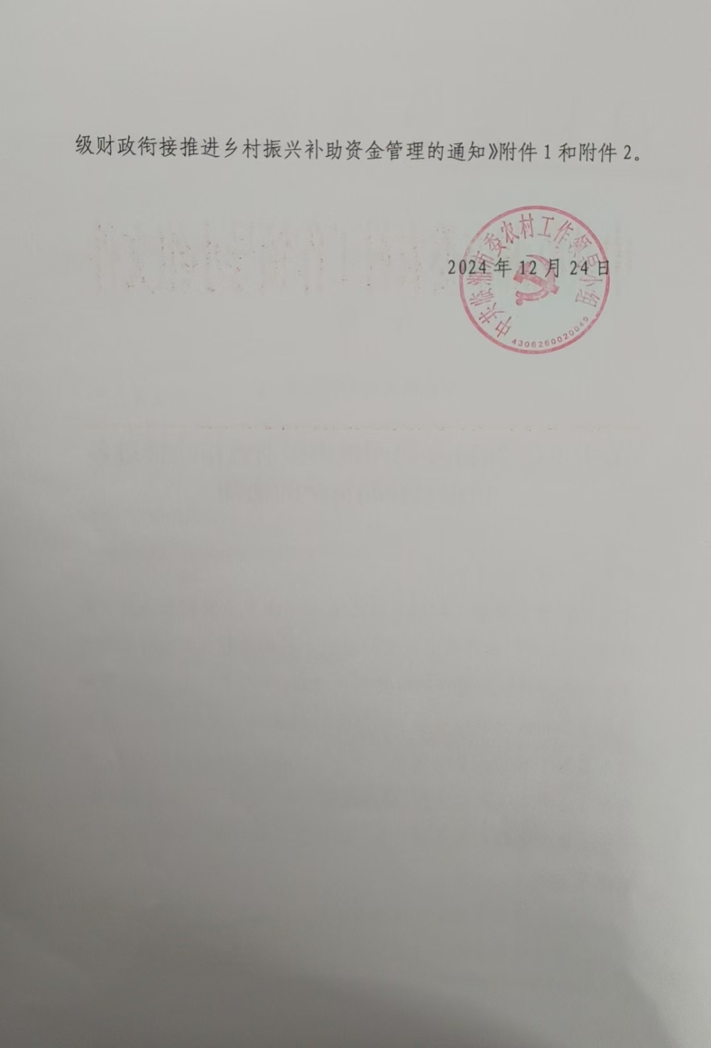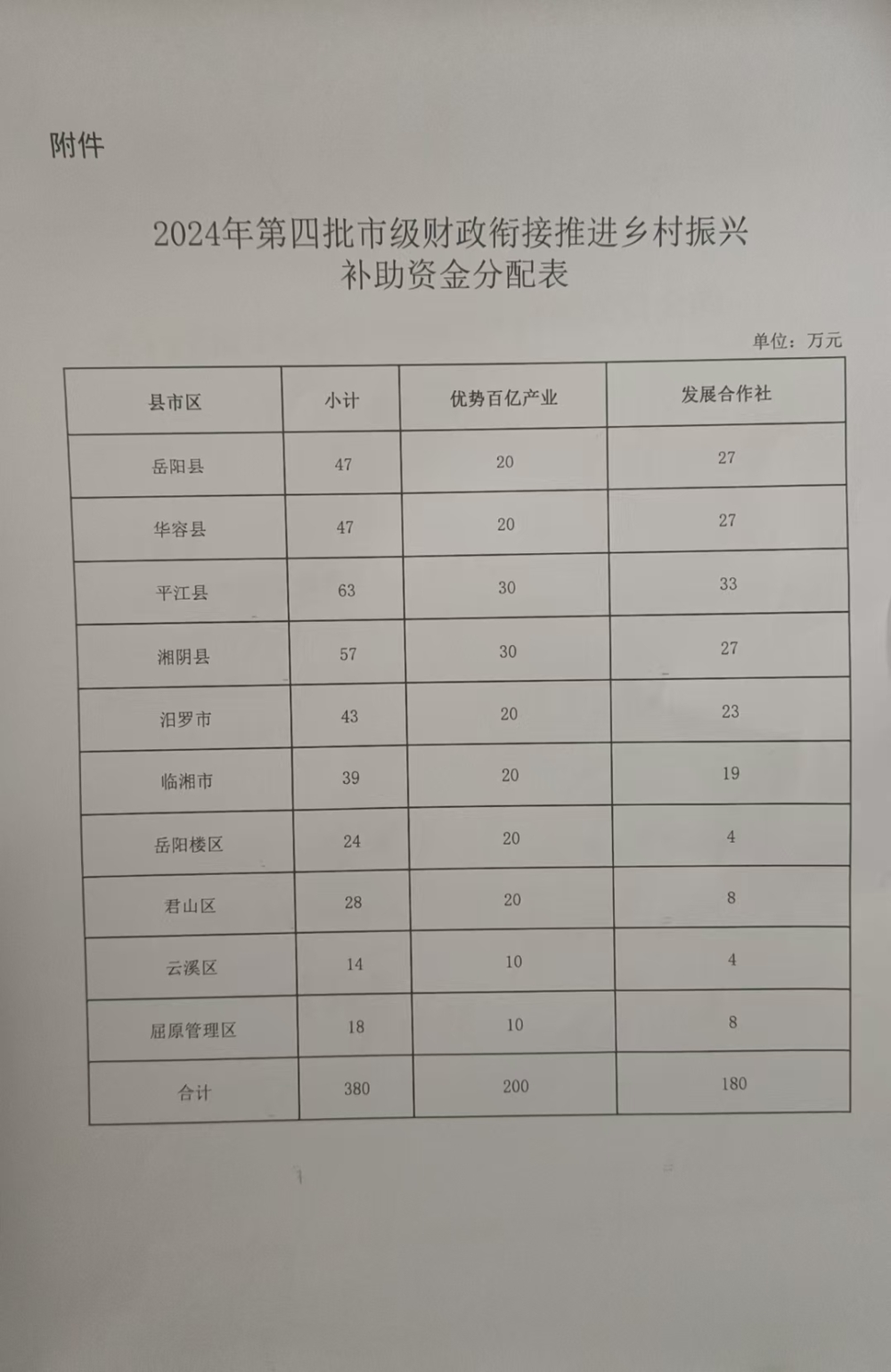 關于下達2024年第四批市級財政銜接推進鄉村振興補助資金的通知(岳財農指[2024]31號)
