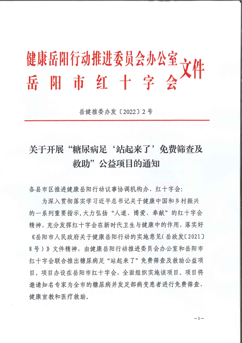關于開展“糖尿病足‘站起來了’免費篩查及救助”公益項目的通知