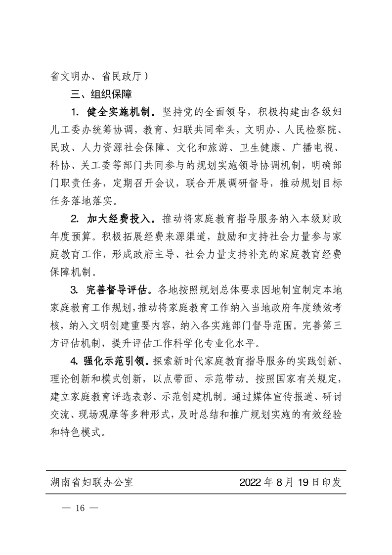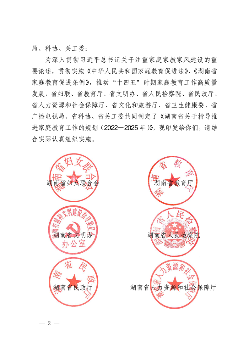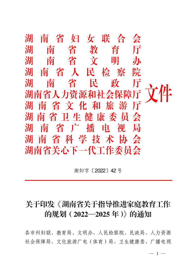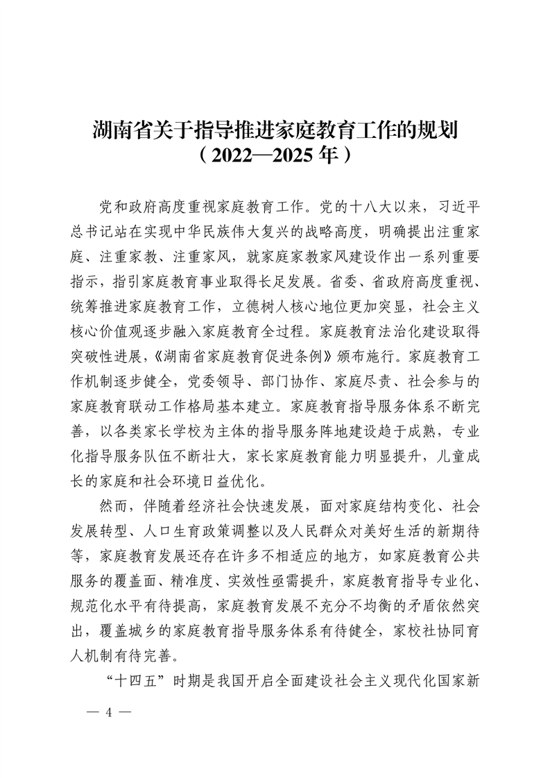 關(guān)于印發(fā)《湖南省關(guān)于指導(dǎo)推進(jìn)家庭教育工作的規(guī)劃(2022-2025年)》的通知