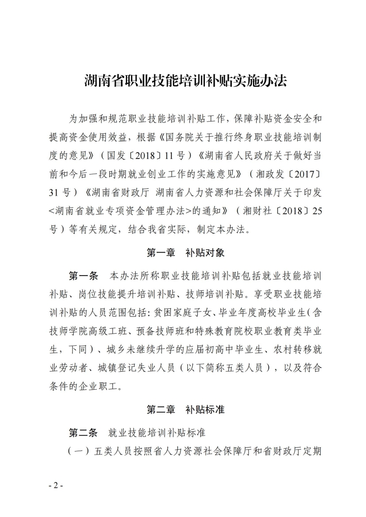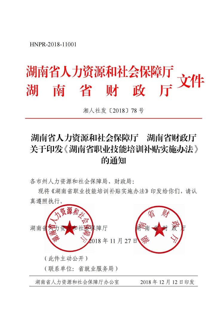 湖南省職業技能培訓補貼實施辦法(湘人社發〔2018〕78號)