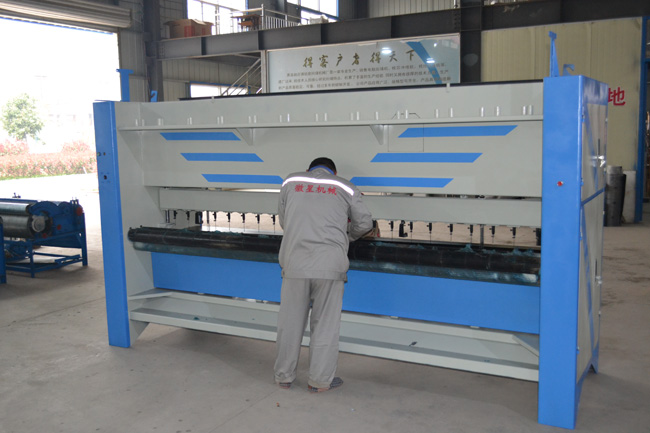 質檢部師傅師傅正在對大棚保溫被絎縫機做出廠質檢