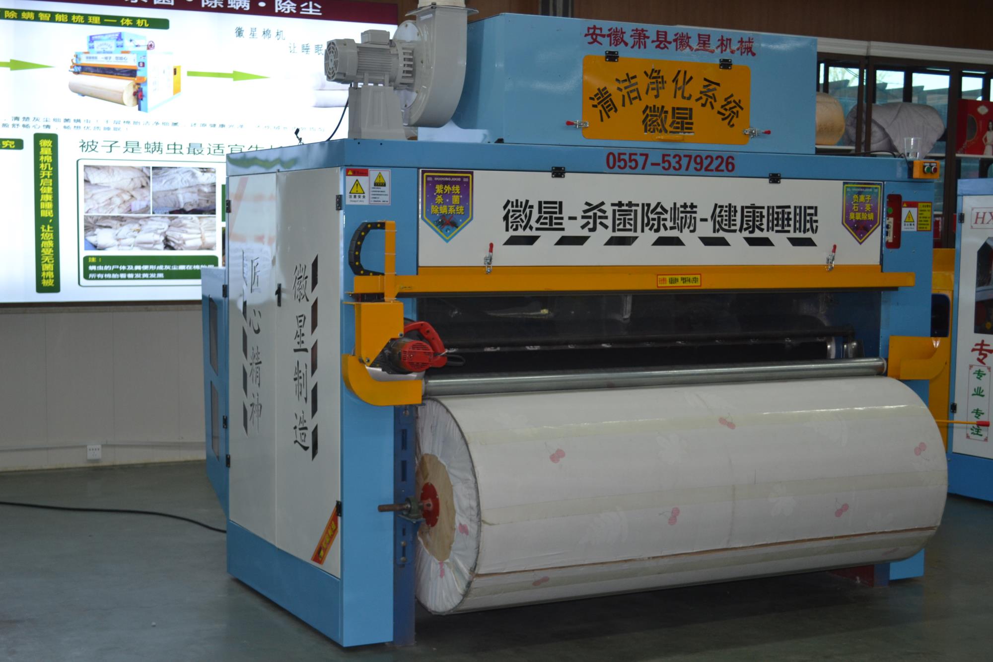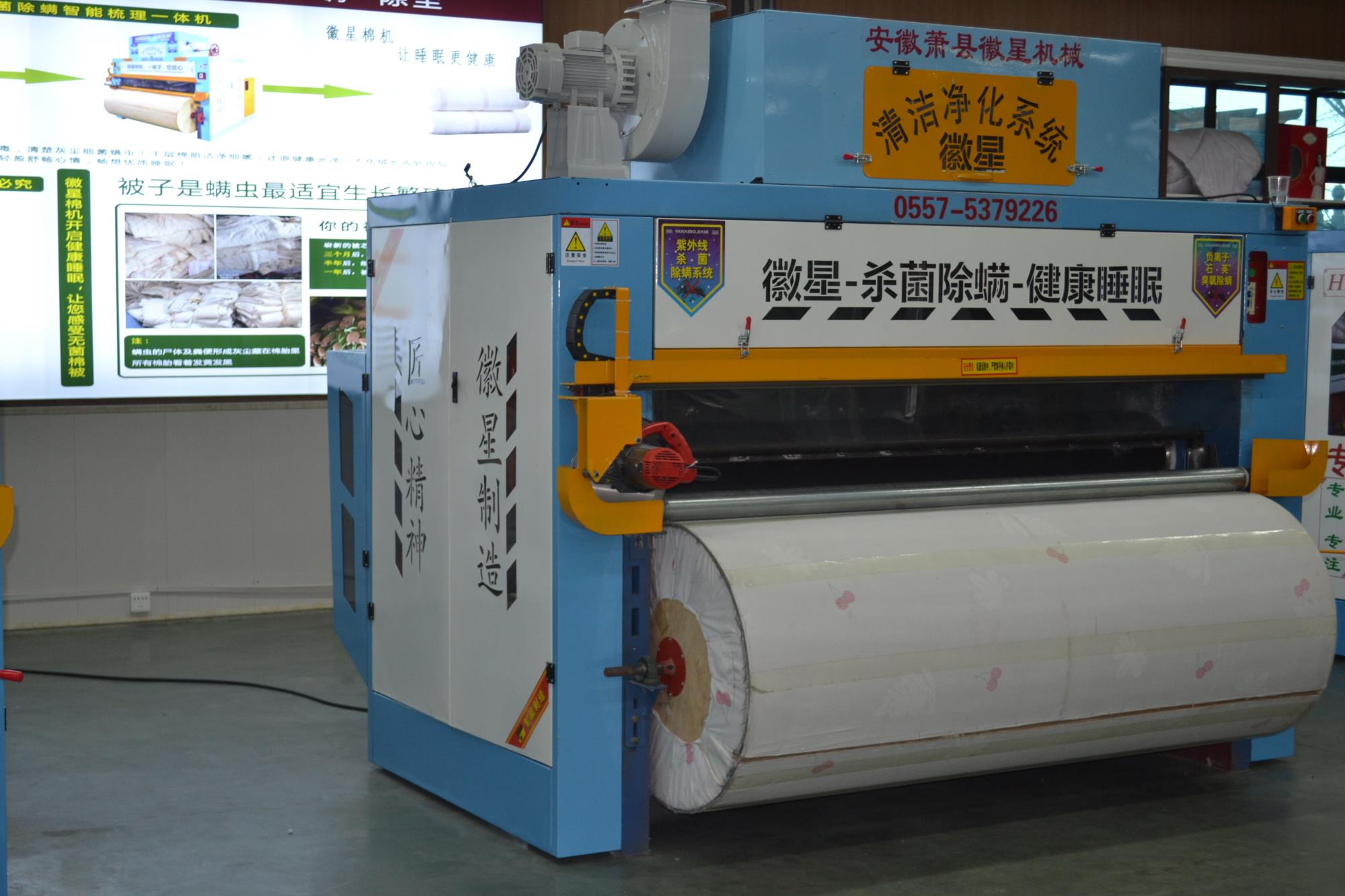 產品簡介:全自動彈花機是徽星彈花機的專利產品梳棉花機器,,一次成型全自動梳棉花機器,寬度任意調節,大小被子任意做,而且是封閉吸塵梳棉機,可用照明電,3千瓦,非常適合沒有三相電的客戶朋友。